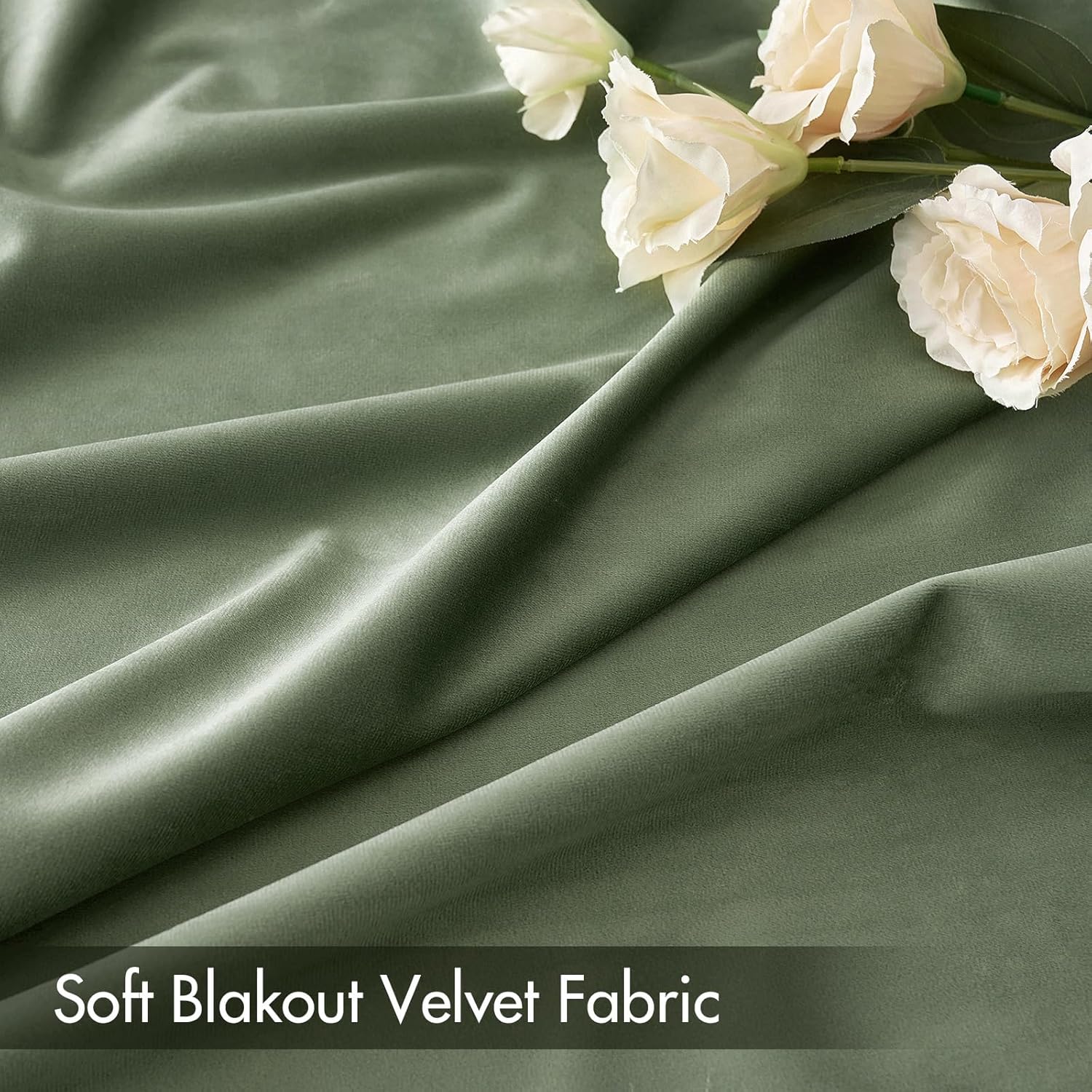 MIULEE Velvet Curtains Sage Green Thermal Insulated Blackout Curtain Drapes for Bedroom Living Room Darkening 90 Inches Long Curtains Panels Rod Pocket Set of 2