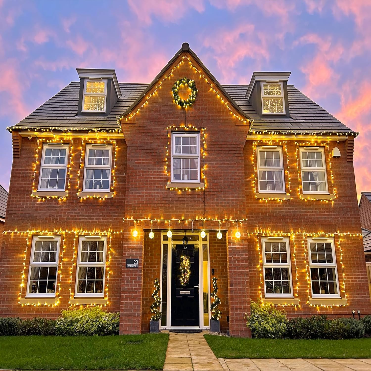 - Waterproof Fairy Lights Plug in: The warm white Christmas lights design with IP44 outdoor waterproof, can withstand wind, snow, rain and extreme weather. String lights are equipped with a UL certified 29V low-voltage plug ensures the safety. It's safe for family with kids or pets!