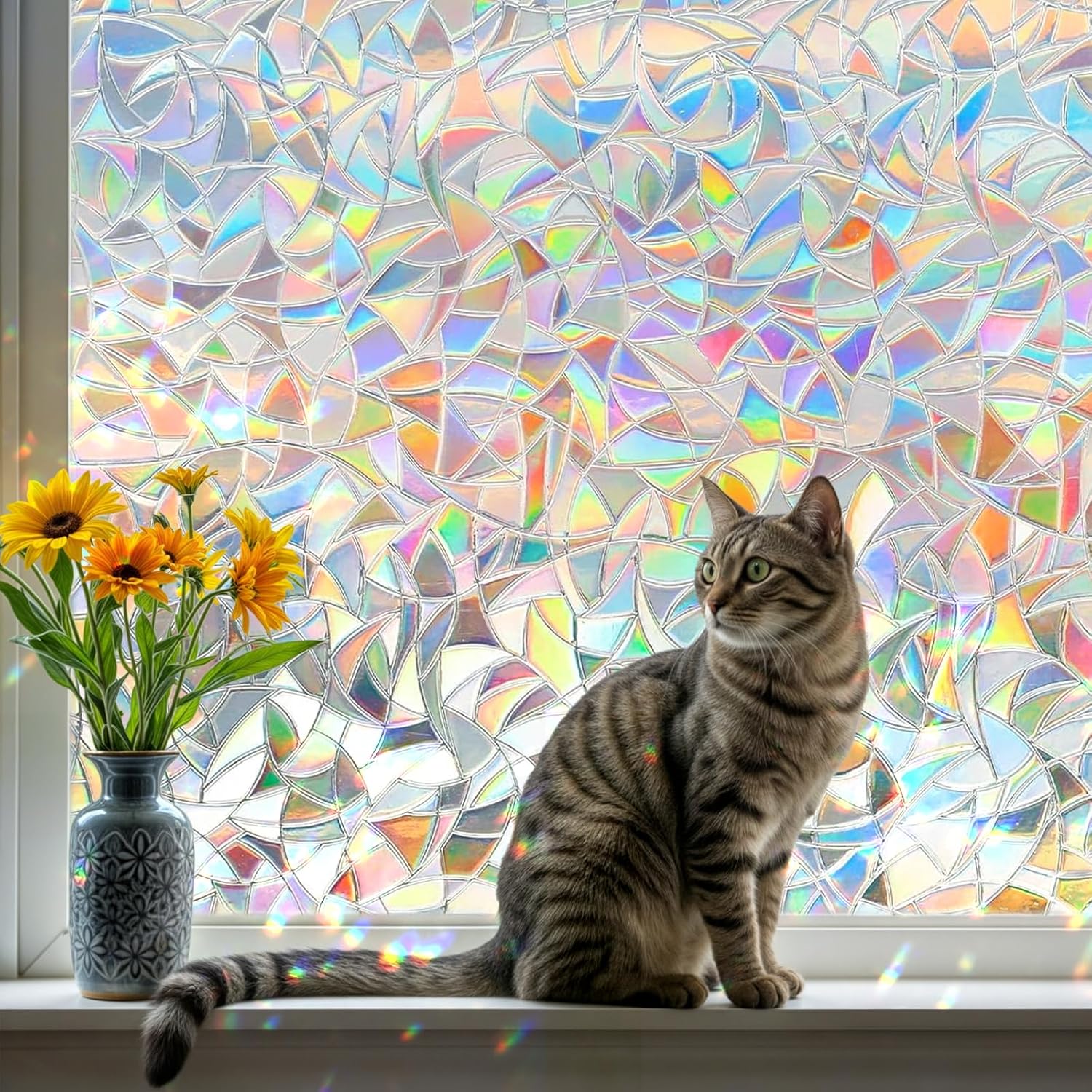 DUOFIRE Window Privacy Film, Rainbow Window Clings for Glass Windows, Stained Glass Film Decorative, 3D Decals Cover, Suncatcher Static Cling Sticker for Home, 23.6 x 78.7 inch