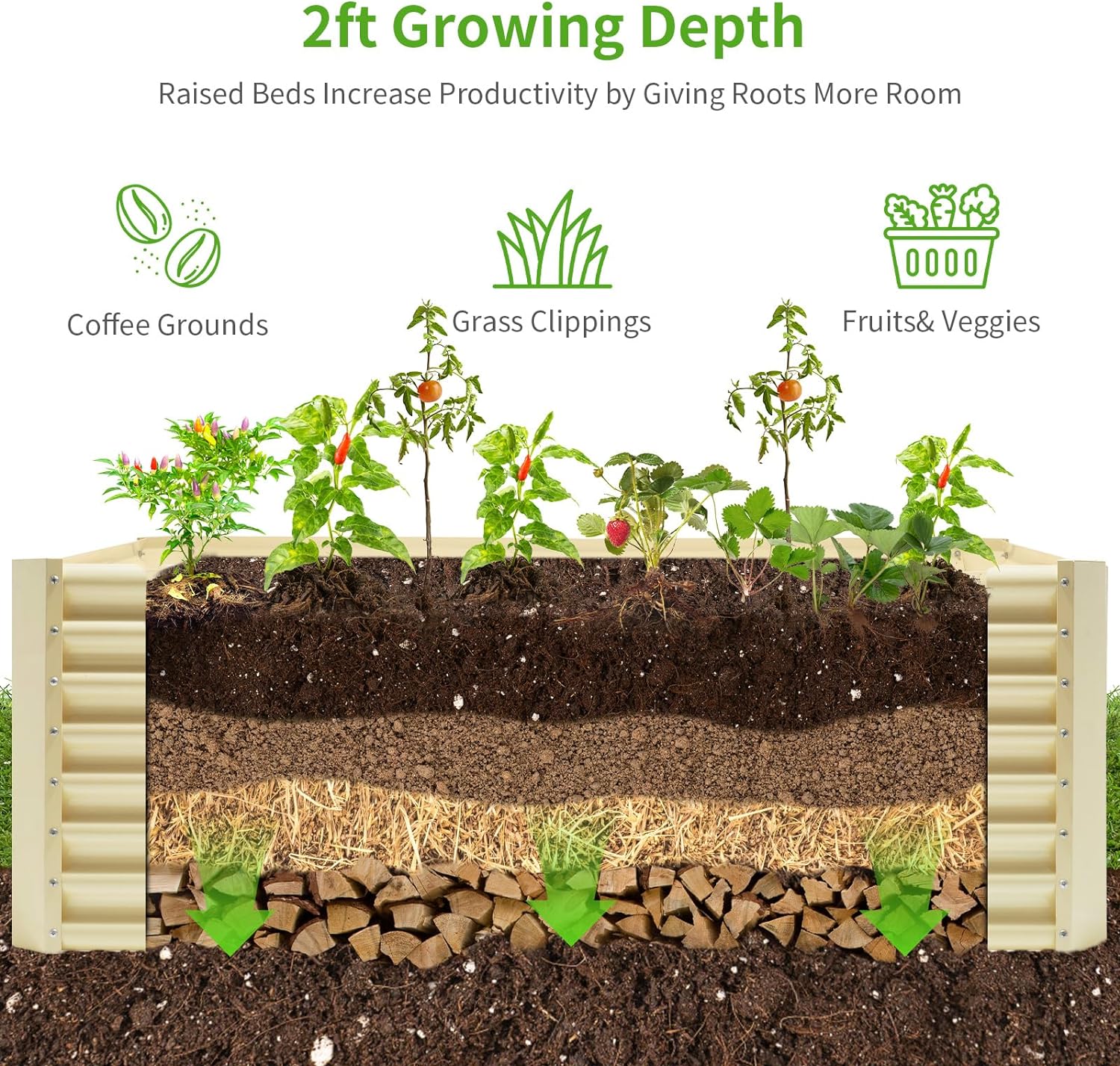 - 【24" Growing Depth】The 24-inch deep garden box easily holds 479 gallons of soil, perfect for growing deep-rooted plants and vegetables such as romaine lettuce, strawberries and more. Overall size: 96"(L) x 48"(W) x 24"(H)