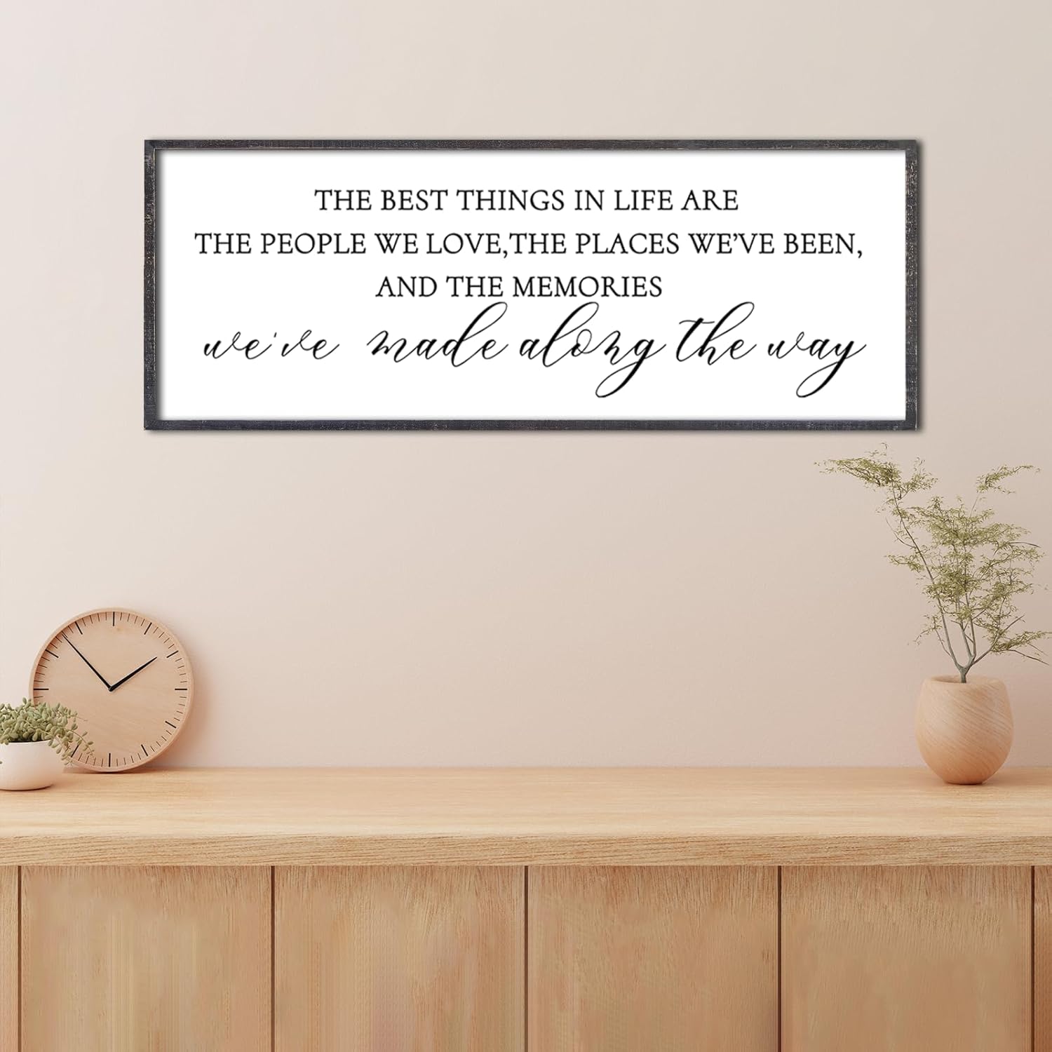 The Best Things in Life Wall Decor Sign 32 x 12 Inch Memories Inspirational Quotes Wood Framed Family Entryway Living Room Home Wall Art for Farmhouse Bedroom Room (Black)