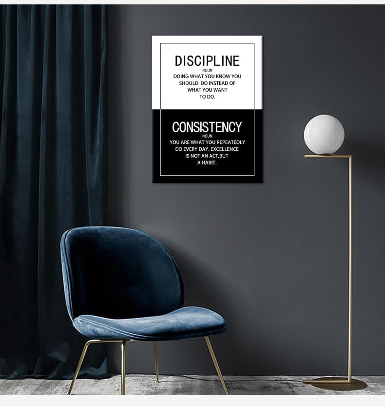 WYJDFART Discipline Consistency Noun Inspirational Wall Art Motivational Posters Picture Prints Canvas Modern Home Decor Painting Artwork for Office Stretched and Framed Ready to Hang [18''W x 24''H]