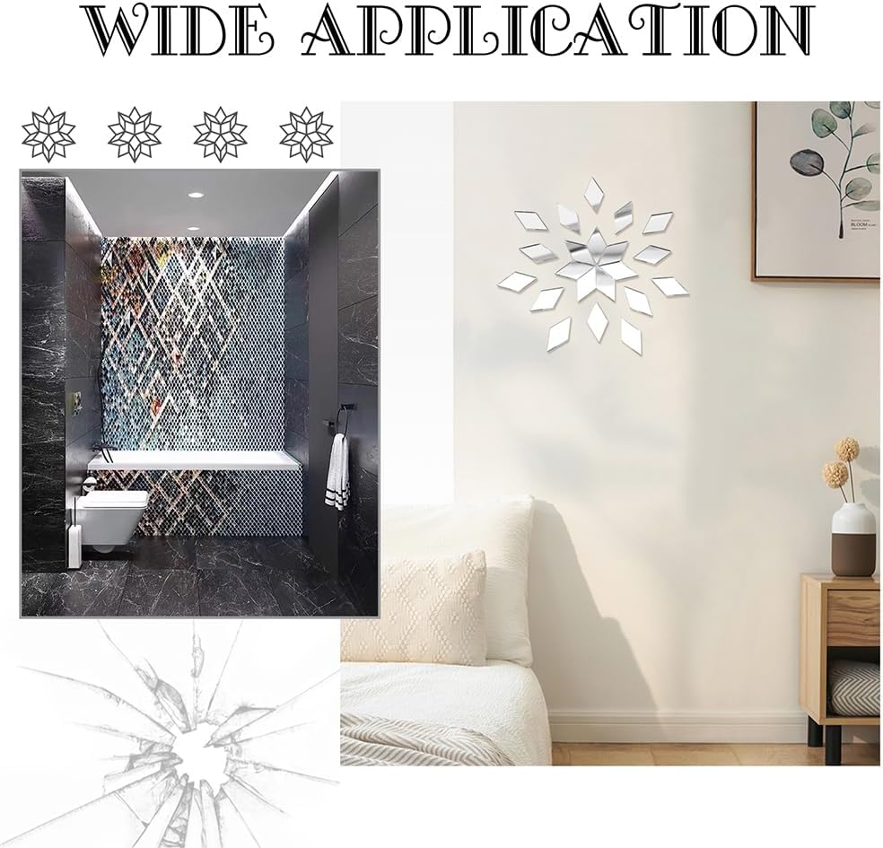 - Rhombus Shaped Design--The small mirror mosaic tile is designed with rhombus shape, delicate and exquisite in design, lovely and novel in shape, which can highlight an artistic and modern atmosphere to your home, making your home more stylish and charming.