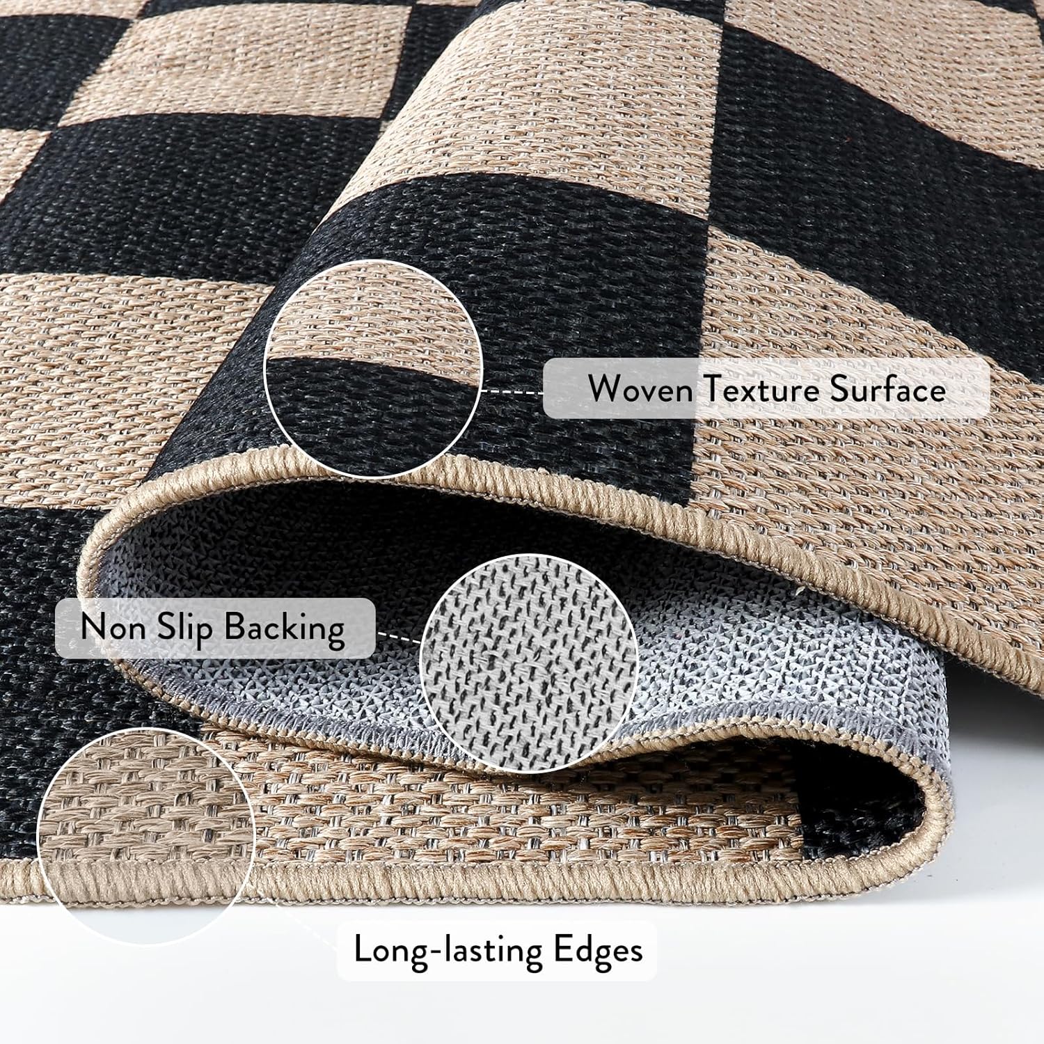 - Functional Rug: Checkered rug lends a sense of simplicity and comfort to your patio, hallway, entryway, kitchen, bedroom, camping, laundry room, RV, front door, dining room, sunroom, deck, courtyard, or more indoor/outdoor rooms, creating a warm appearance