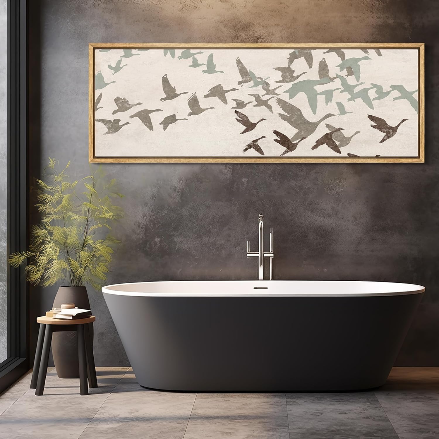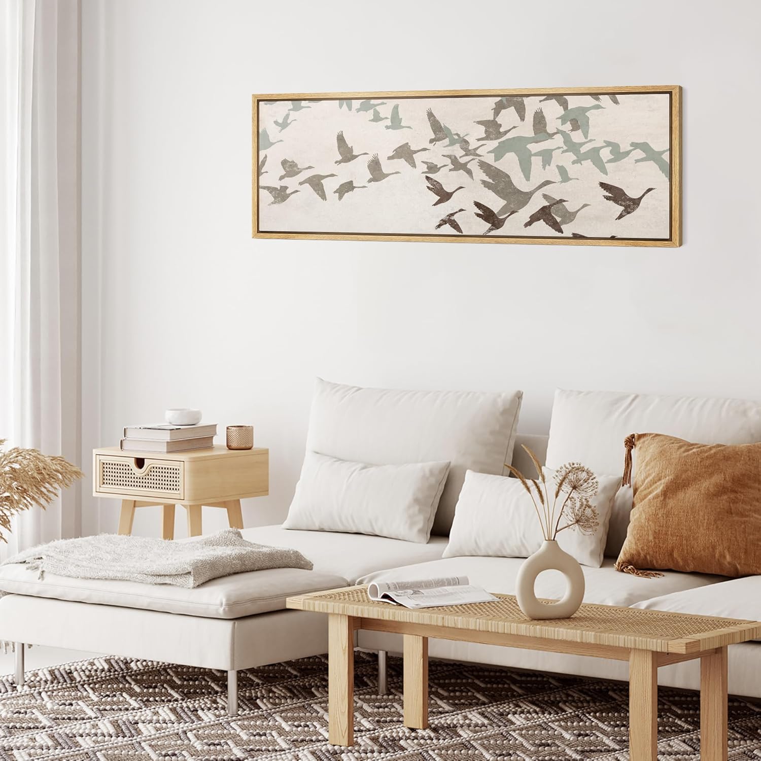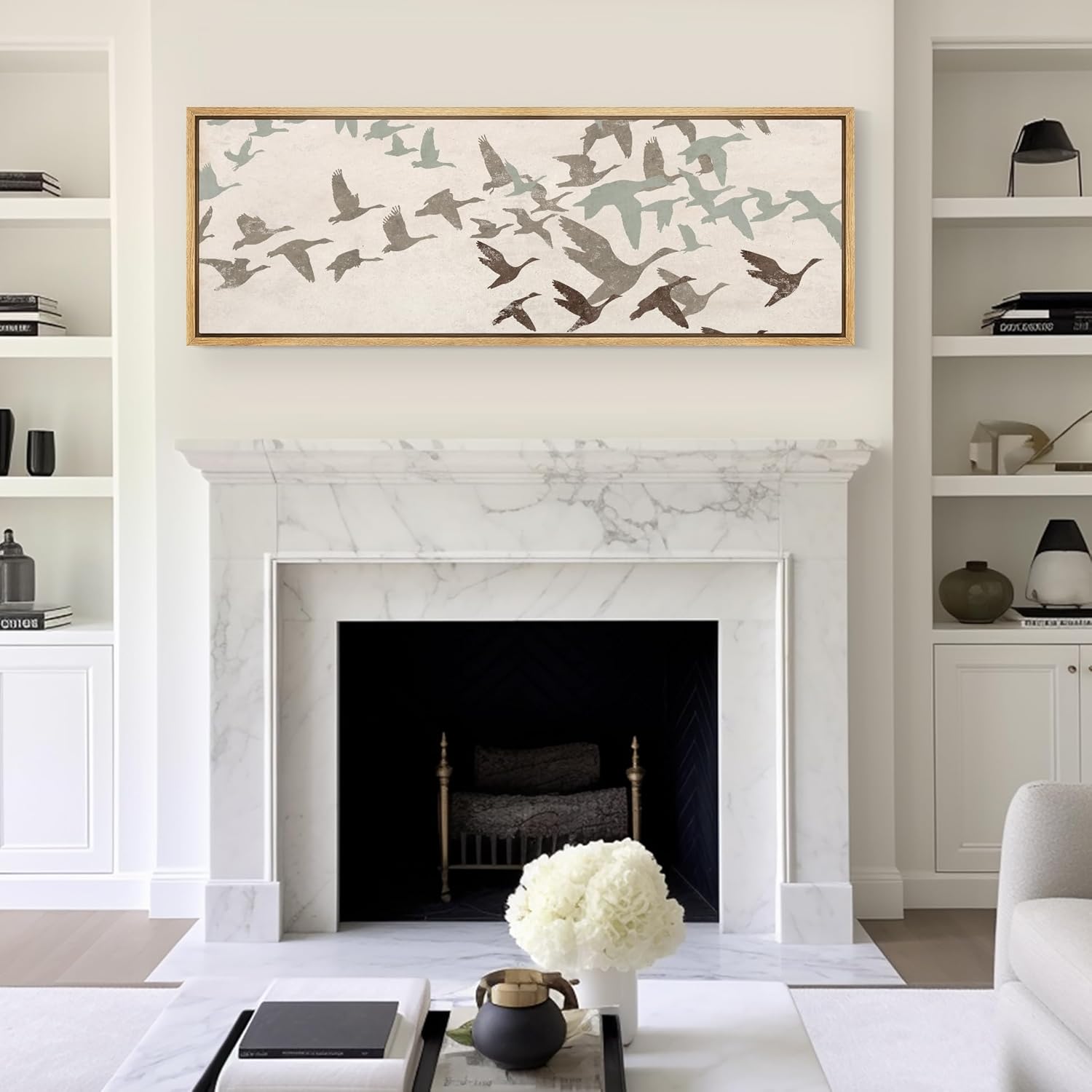 MUDECOR Large Framed Canvas Print Wall Art Wild Freedom Assorted Birds in Flight Antique Retro Fine Art Illustrations Decorative Colorful for Bedroom - 60"x20"