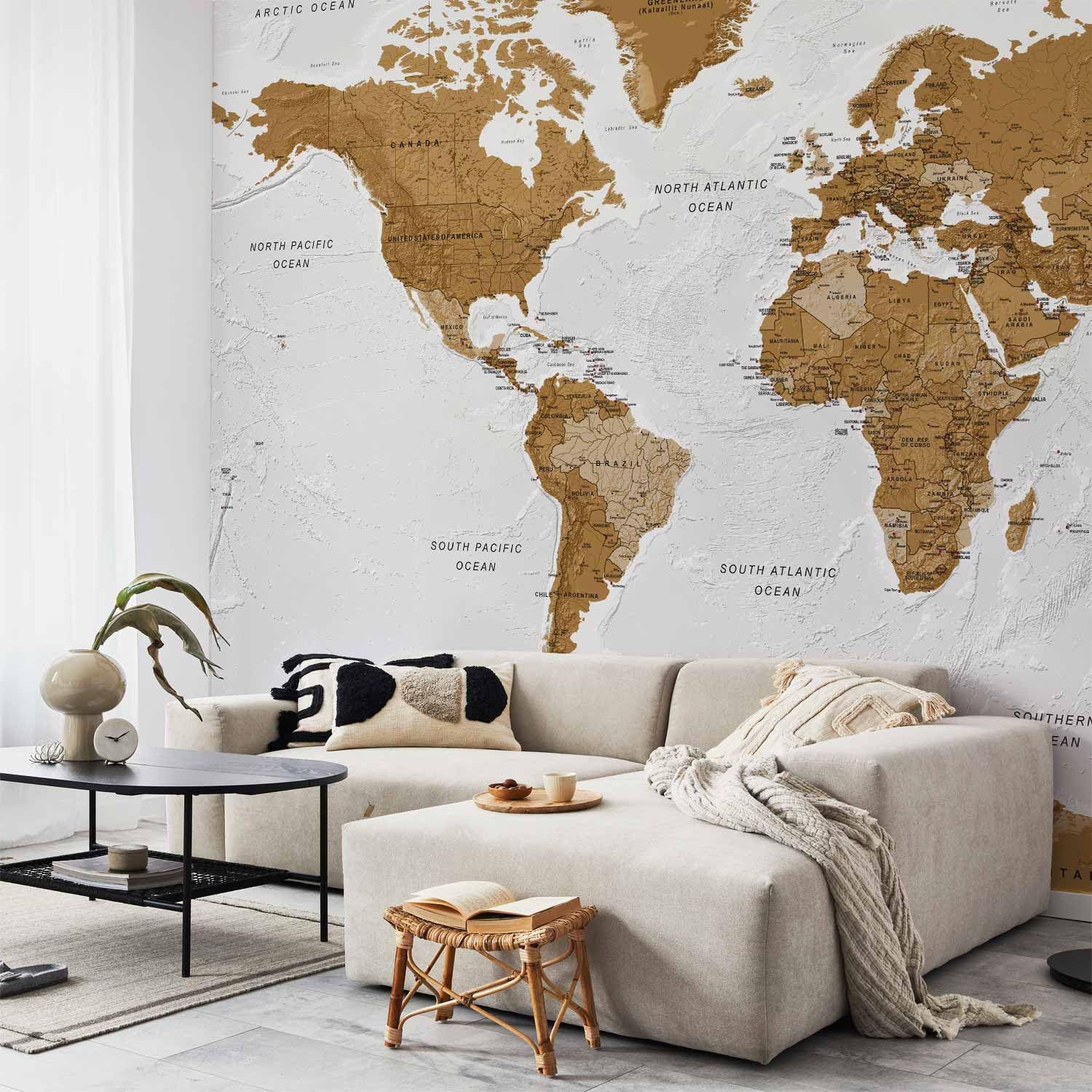 artgeist Wall Mural World Map 193x138 in - XXL Peel and Stick Self-Adhesive Wallpaper Removable Large Sticker Foil Wall Decor Print Picture Image Design Map of The World k-A-0093-a-a