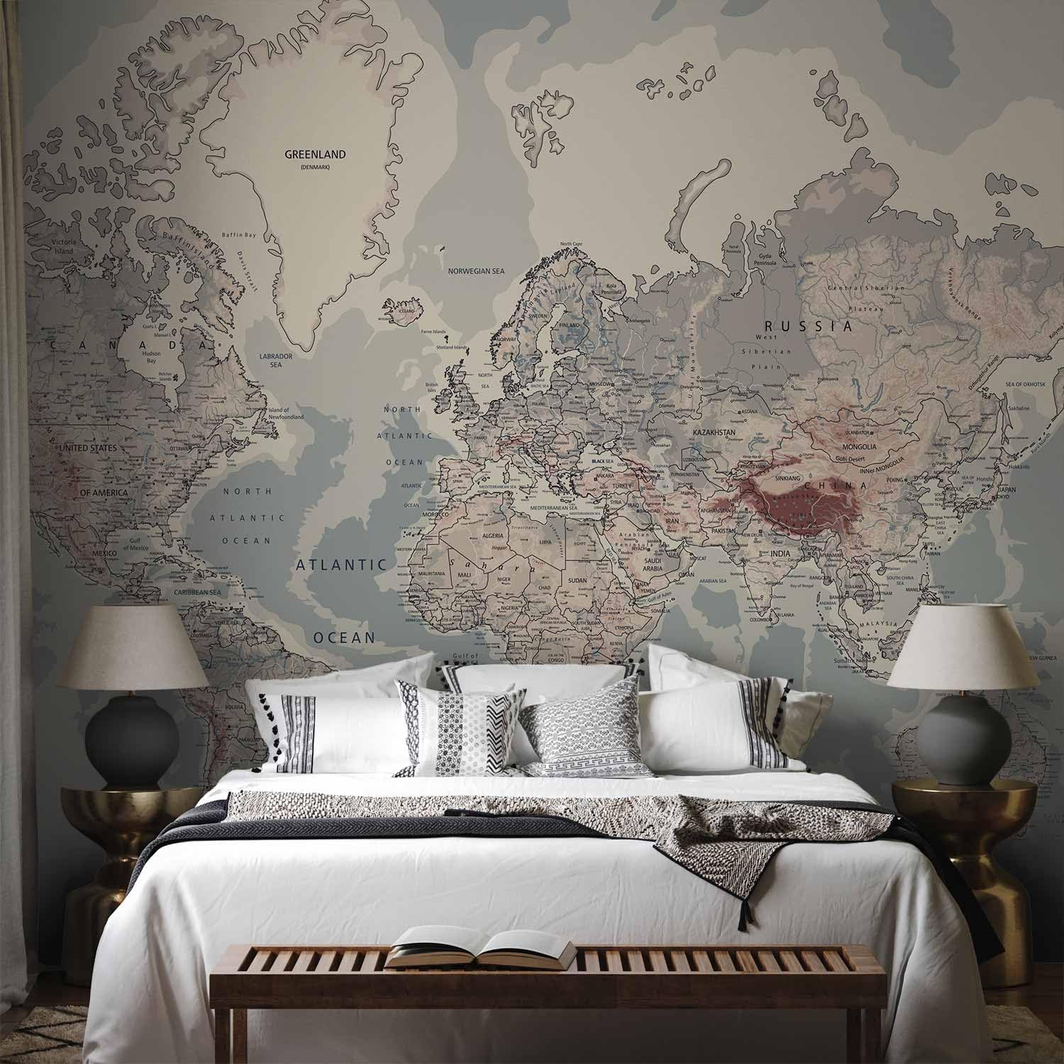 artgeist Wall Mural World Map 193x138 in - XXL Peel and Stick Self-Adhesive Wallpaper Removable Large Sticker Foil Wall Decor Print Picture Image Design Map of The World k-A-0061-a-c