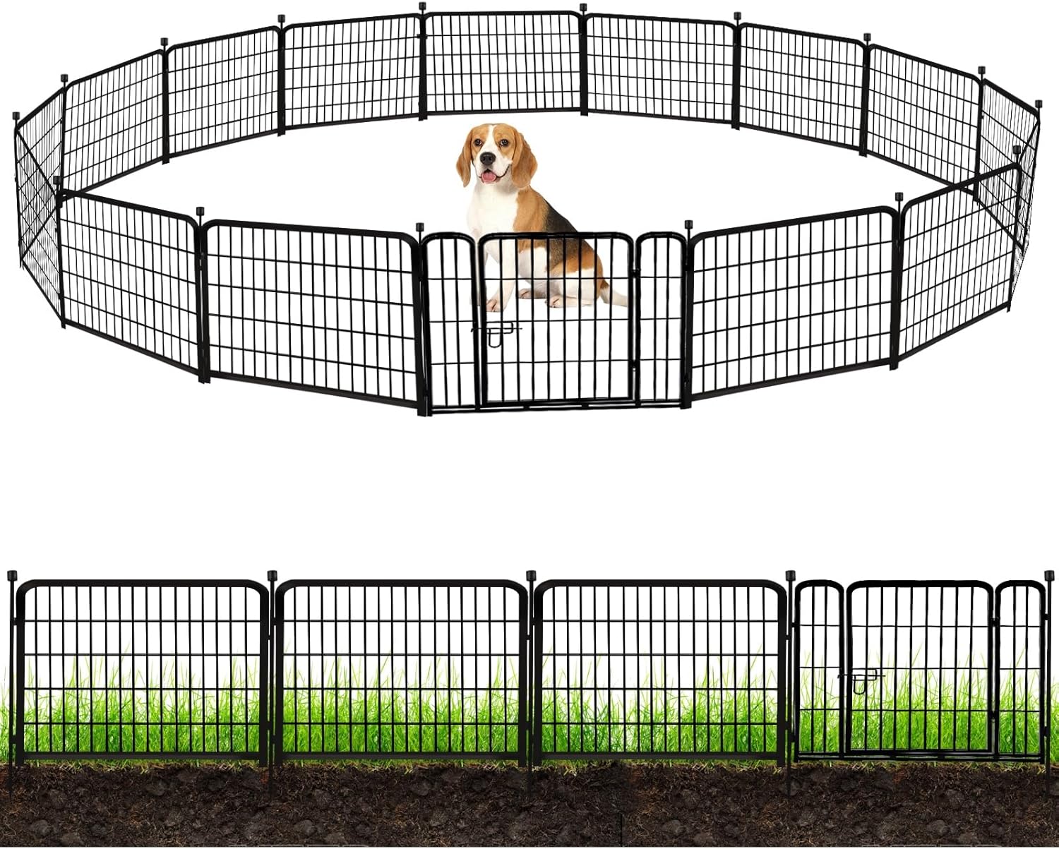 ADAVIN 24 in(H) Garden Fence with Gate, 14 Panels Heavy Duty Iron Metal Animal Barrier Fence, Camping Fence, Garden Fences and Borders for Dogs,Total 34.5 Ft(L), Black