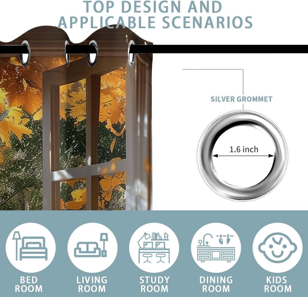 Landscape Blackout Curtains for Girls Boys Teens Home Decor, Nature 3D Autumn Fall Forest Maples Grommet Thermal Insulated Drapes Darkening Window Curtain for Bedroom Living Room, 84 x 84 Inch