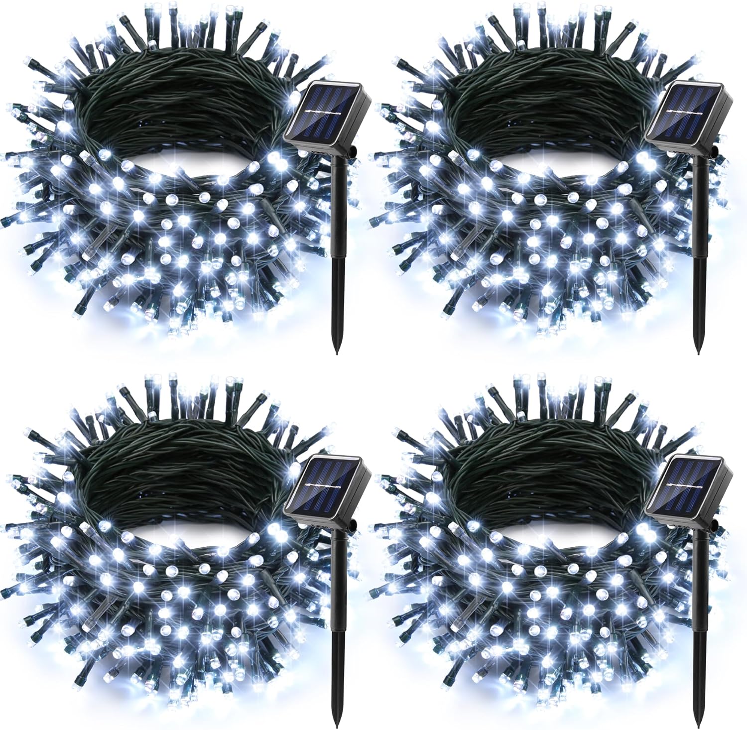 Joomer Solar Christmas Lights Outdoor 4 Pack Total 156FT 400LED 8 Lighting Modes Solar String Lights Waterproof Fairy Tree Lights for Garden Yard Patio Christmas Decoration (White)