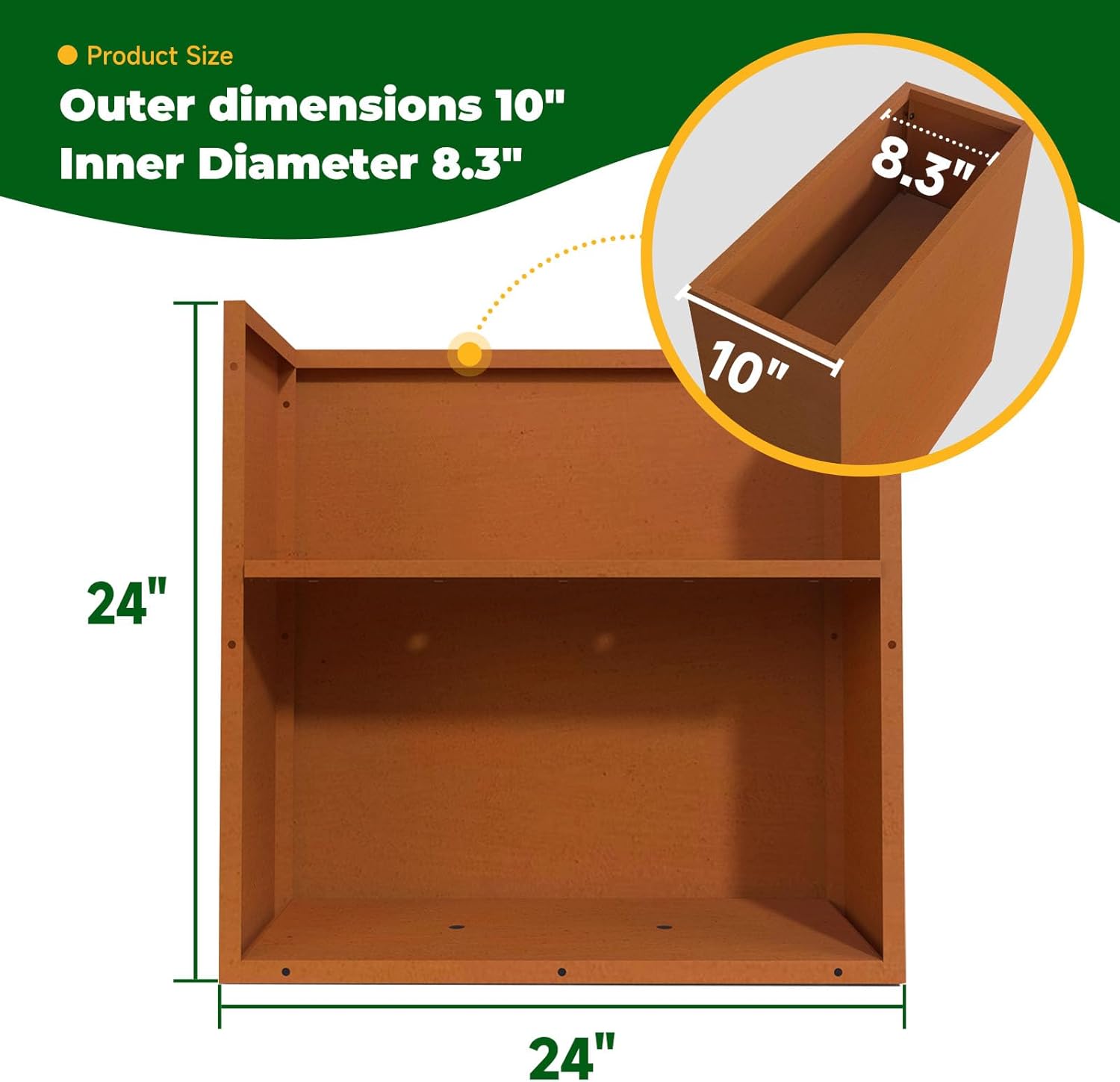 Corten Steel Metallic Heavy Planter for Outdoor Plants 24"x10"x24" Metal Planter Spliced Flower Pot with Partitions for Outside,Indoor,Garden (Corten, 24 * 10 * 24)