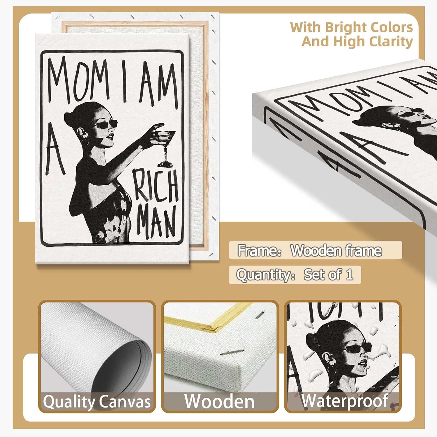 Mom I Am A Rich Man Aesthetic Retro Music Goblet Poster Feminist canvas Wall Art Vintage Bar Cart Wall Decor Preppy Dorm Decor Unique Wall Art prints painting 16x24in Framed