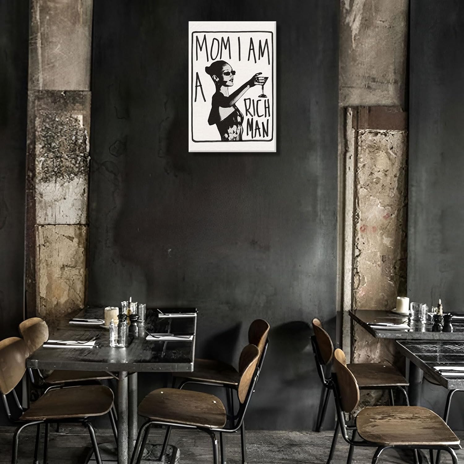Mom I Am A Rich Man Aesthetic Retro Music Goblet Poster Feminist canvas Wall Art Vintage Bar Cart Wall Decor Preppy Dorm Decor Unique Wall Art prints painting 12x16in Framed