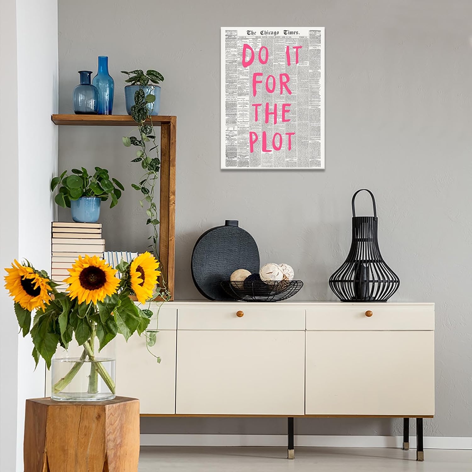 Liyark Retro Black And White Chicago Newspaper Poster Pink Trendy Preppy Apartment Art Motivational Affirmation Do It For The Plot Prints For Home Bedroom Living Room Wall Decor 12x16in Framed