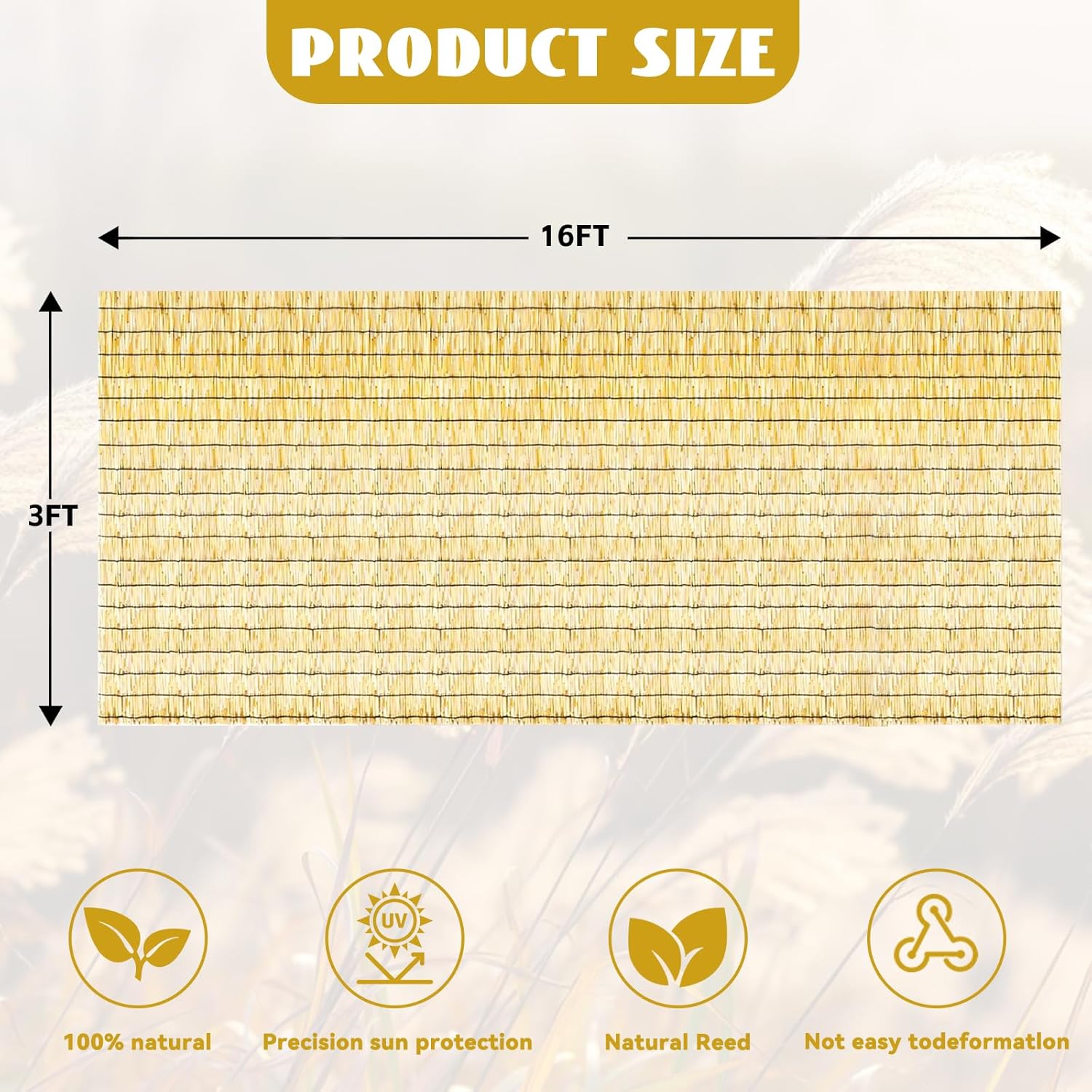 - Long Service Life: Each reed is carefully selected by hand and woven with cotton thread to make the screens of reed tighter. Ensure it won't damage in the rain like metal wire, increasing the durability and beauty of natural reed fencing rolls. The bamboo fence rolls 5 feet high can last for many years.