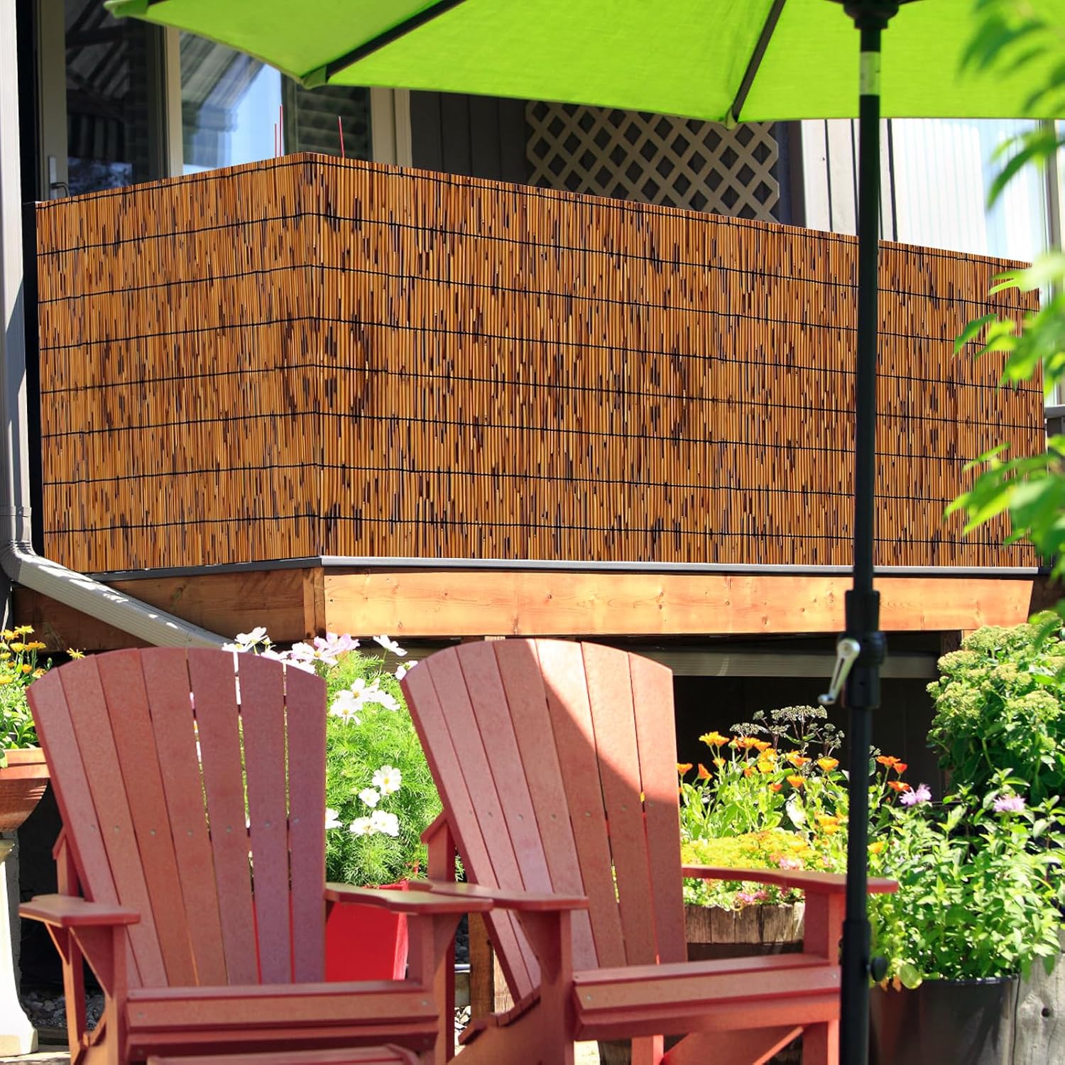 Bamboo Reed Fencing, Decorative Bamboo Curtains for Patio, Light Russet Privacy Fence Reed Screens Outdoor for Patio Garden Balcony Privacy Screen, 5 x 5 FT