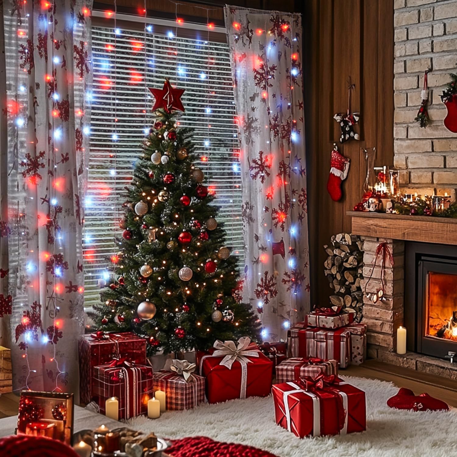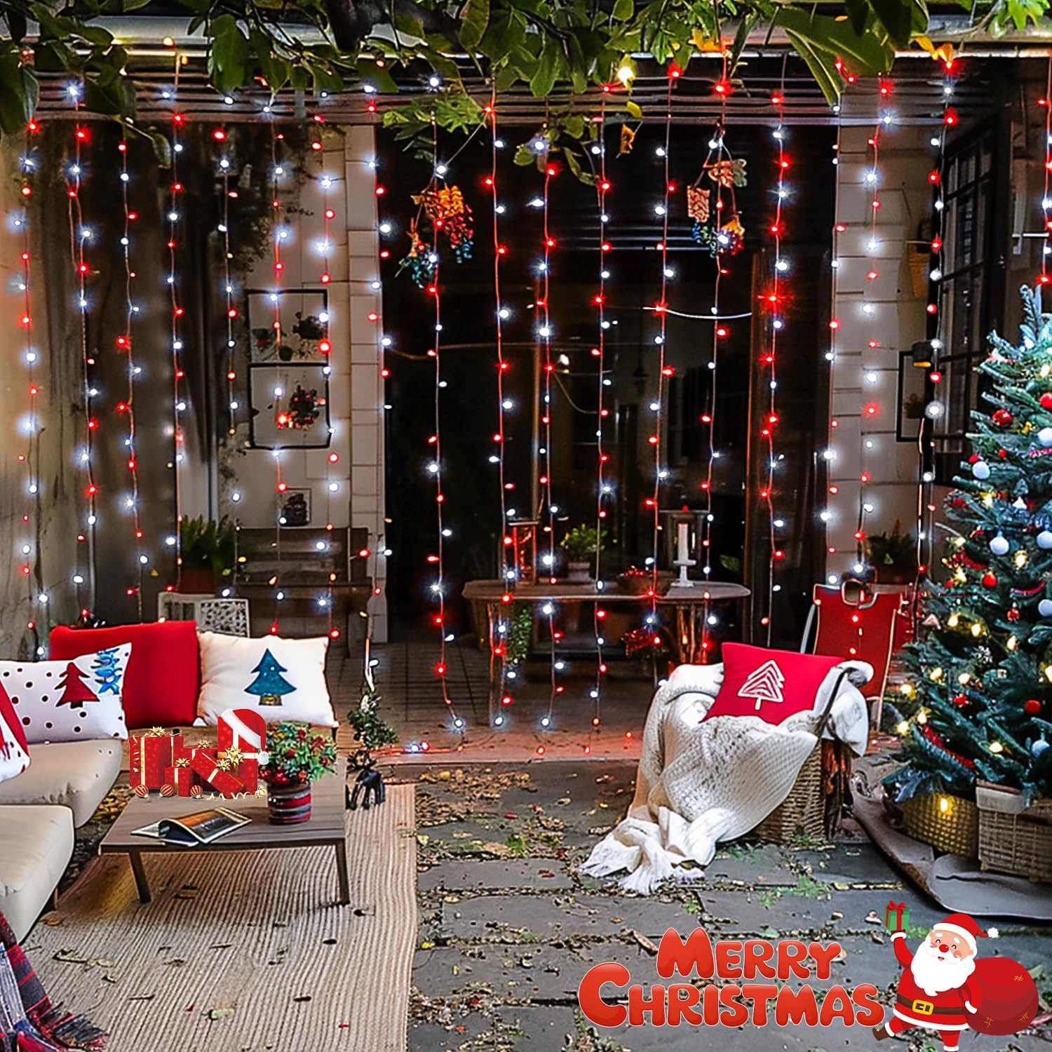- 9.8X9.8FT RED AND WHITE CHRISTMAS CURTAIN LIGHTS - Add wonderful decorations to your Christmas event with the 300LED red and white curtain lights (UNCONNECTABLE). It comes with 10 light strands, each containing 30 pcs of LED lights. The width and height of 9.84 feet make it sufficient to cover most windows and walls for a larger light display. It gives off a glow and adds a great festival ambiance to your Christmas decorations