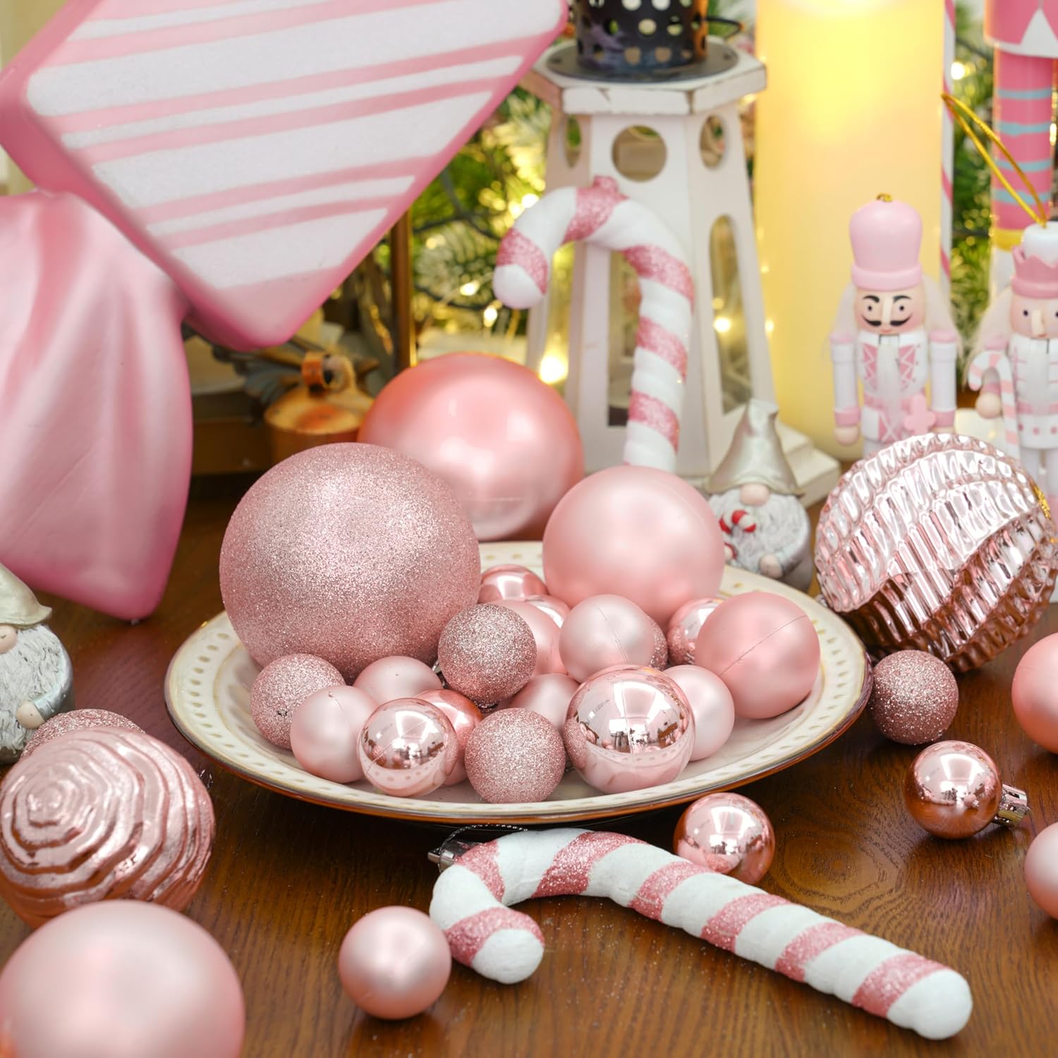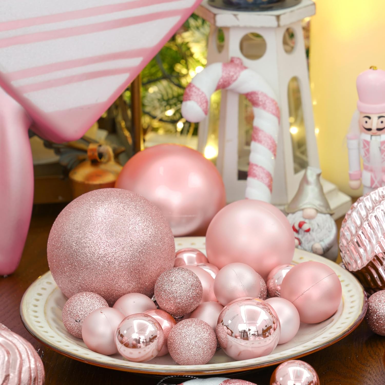 XmasExp 24ct Mini Christmas Ball Ornaments Shatterproof Christmas Ornaments Set Decorations for Xmas Tree Balls 30mm/1.18" (Rose Gold)
