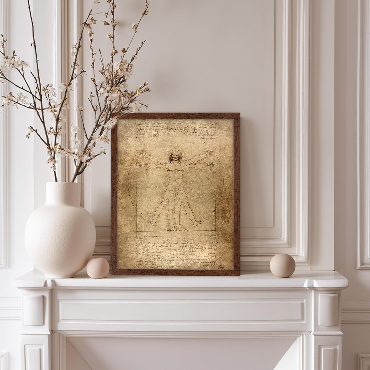 Poster Master Classic Leonardo Da Vinci Poster - Vintage Renaissance Print - Gift for Artist, Friend - Vitruvian Man, Proportion, Symmetry, Human Body - Wall Decor for Office, 8x10 Brown Framed
