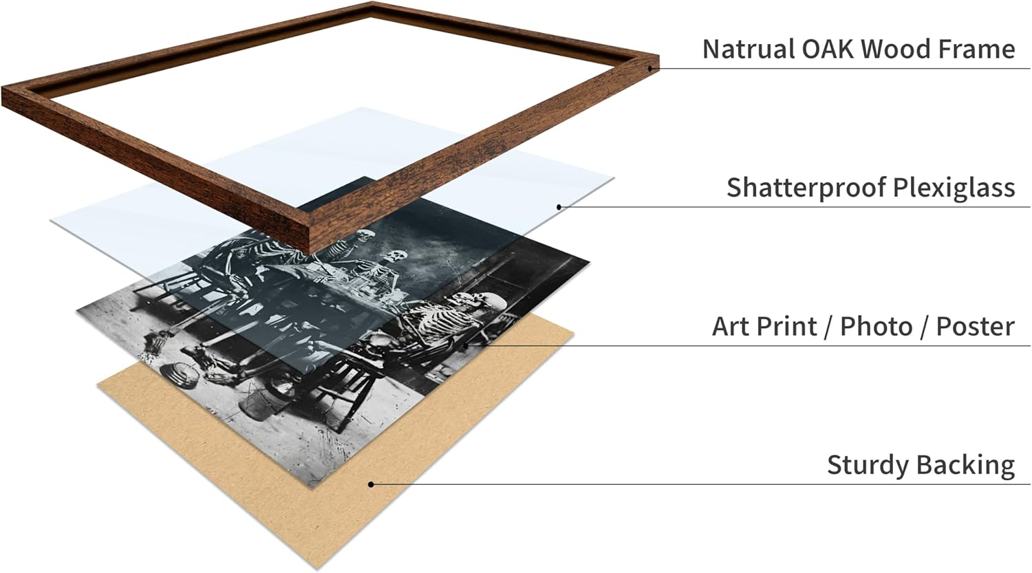Poster Master Vintage Photograph Poster - Retro Daguerreotype Print - Gift for Artist, Friend - Skeletons Smoking at Table, Dinner Party, Goth - Wall Decor for Home, Dorm, 8x10 Brown Framed
