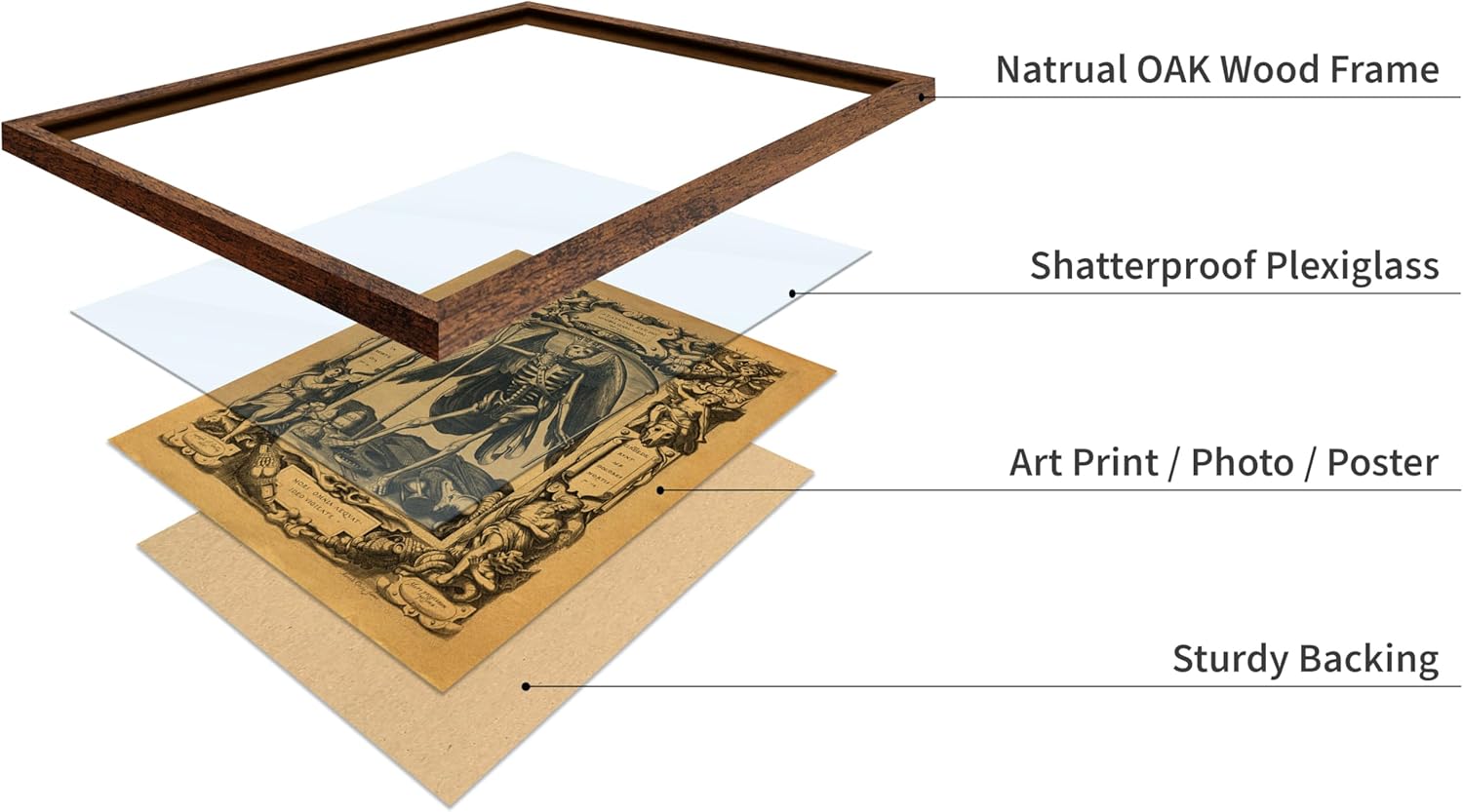 Poster Master Vintage Medieval Poster - Retro Gothic Print - Gift for Artist, Friend - Angel of Death, Memento Mori, Life, Skeleton, Dark - Wall Decor for Home, Living Room, 16x20 Brown Framed