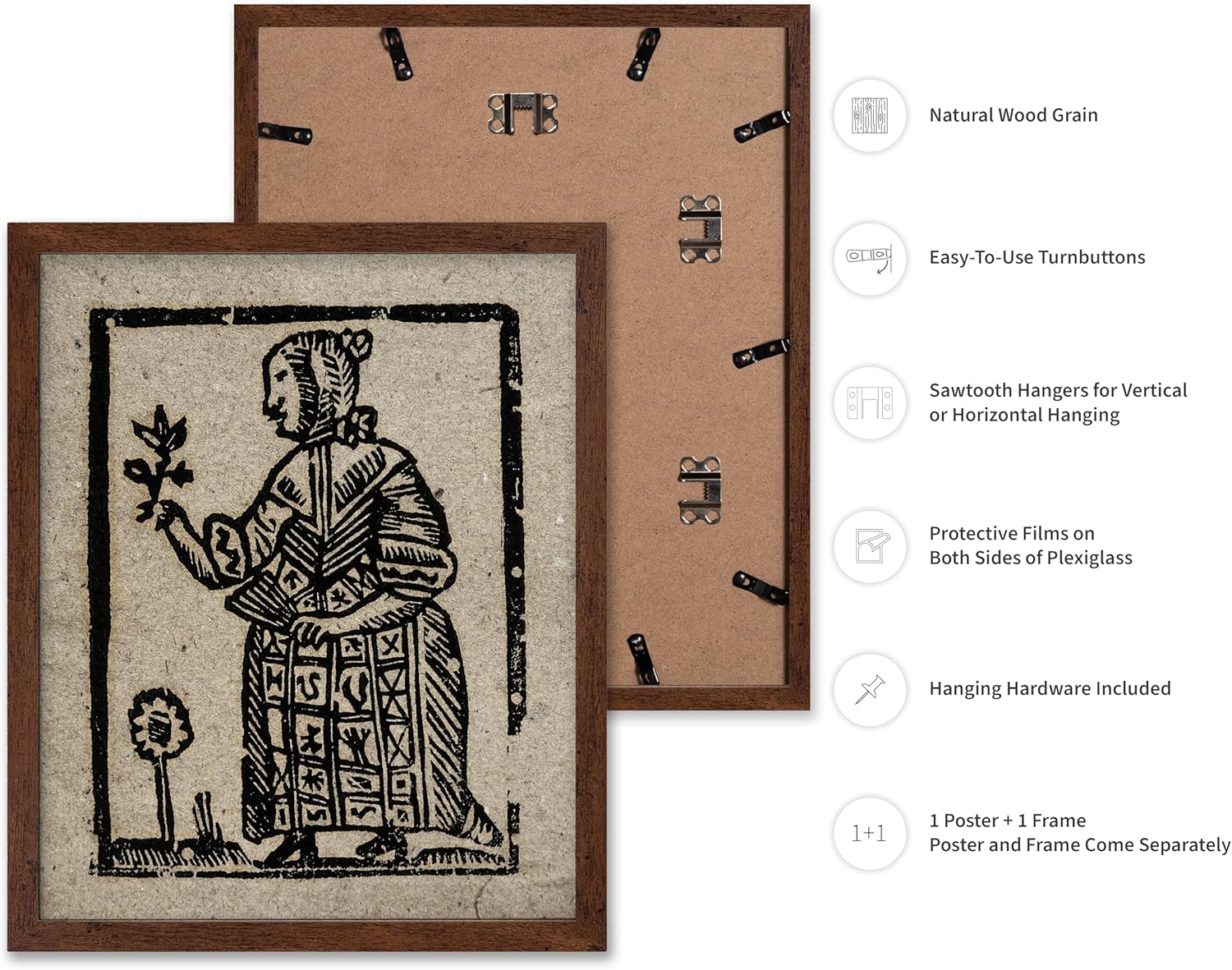Poster Master Vintage Woodcut Poster - Retro Medieval Print - Gift for Gothic, Horror Fan - Witch Holding a Plant, Magic, Spell, Herbalist - Wall Decor for Bedroom, Dorm, 8x10 Brown Framed