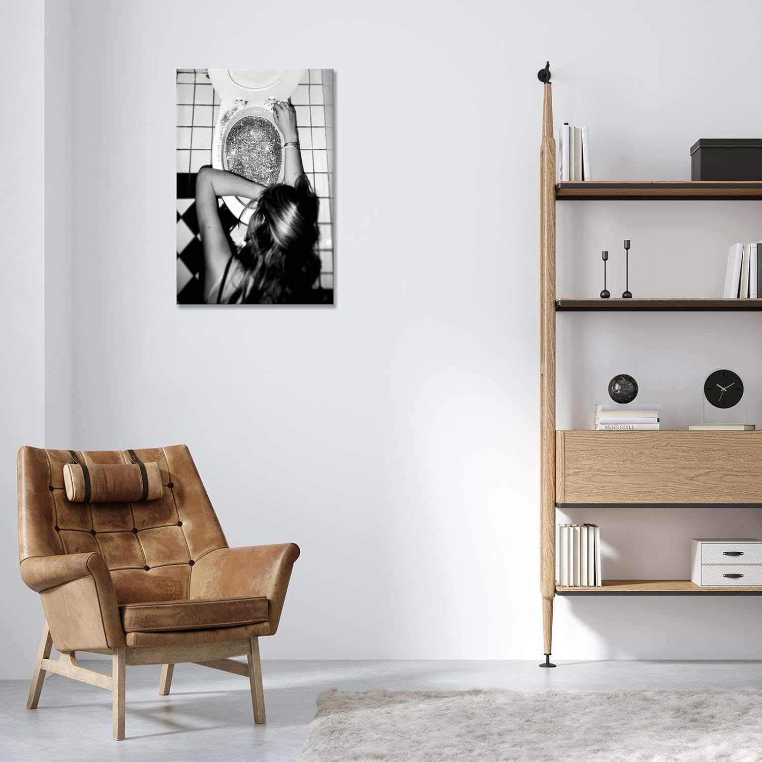 Funny Bathroom Wall Art Black and White posters Bar Disco Party prints painting Girls Bathroom Canvas wall art Funky aesthetics Teen Girl Bedroom wall decor for 16x24in Framed