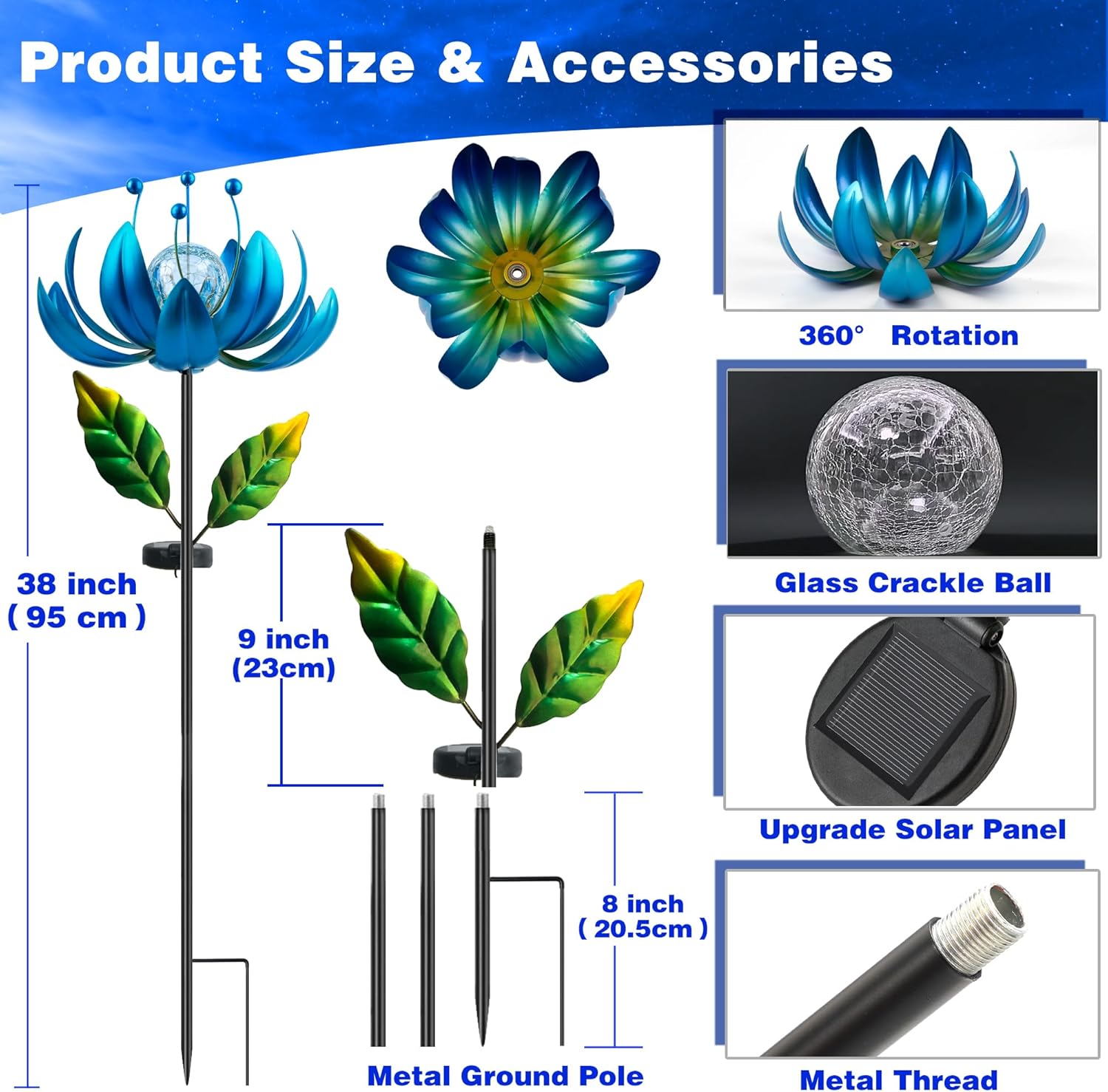 - 【 Easy to Install 】Wind Spinner Outdoor Metal is very easy to install, just twist all the accessories to install. The metal pole, the angle of the petals can be adjusted, you can also adjust the length of the pole and the degree of bloom of the flowers.