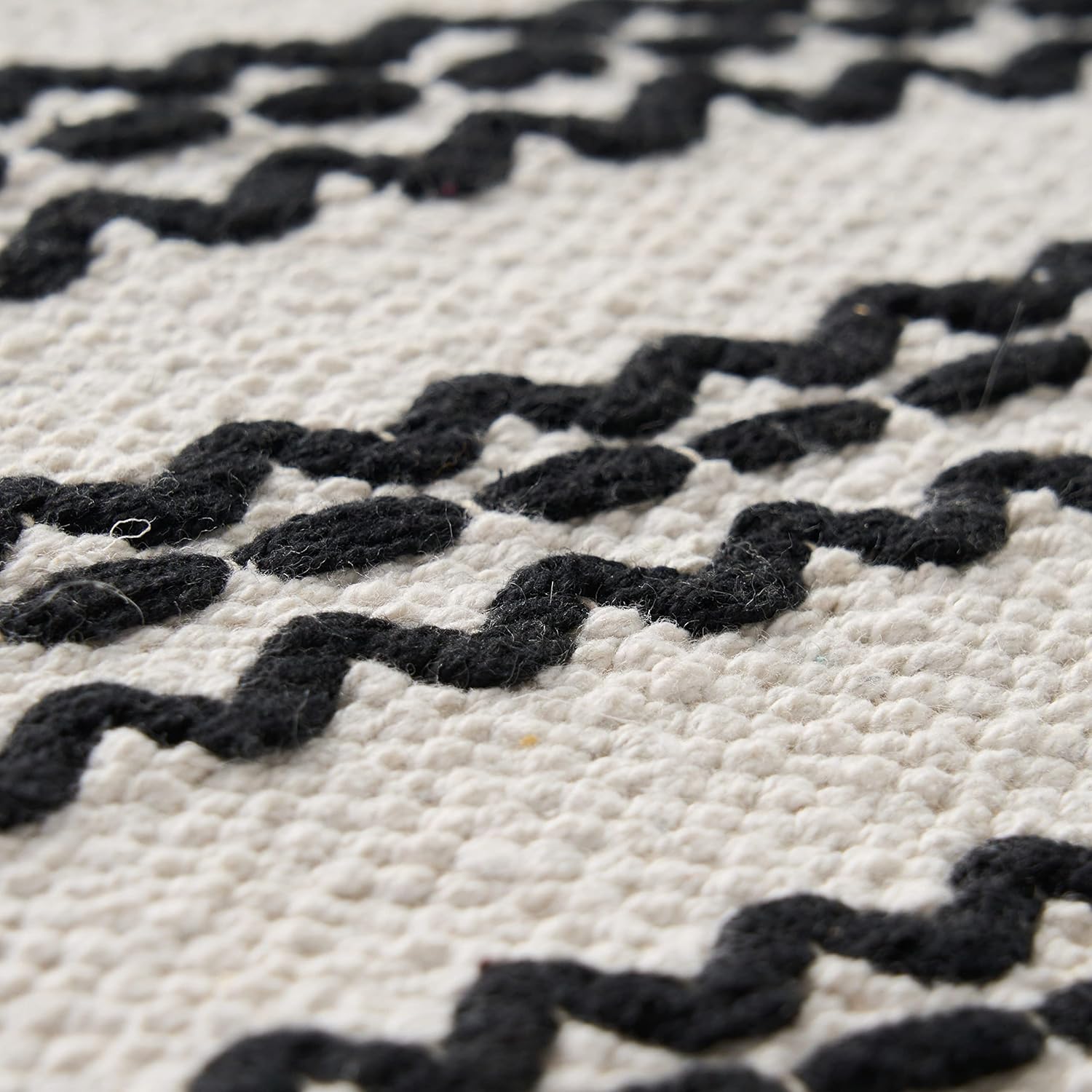GDFStudio Boho Handmade Fabric Cube Pouf Ottoman Foot Stool - Bean Bag Floor Chair - Foot Rest Couch for Living Room Bedroom,Natural and Black,16" x 16" x 15.75"