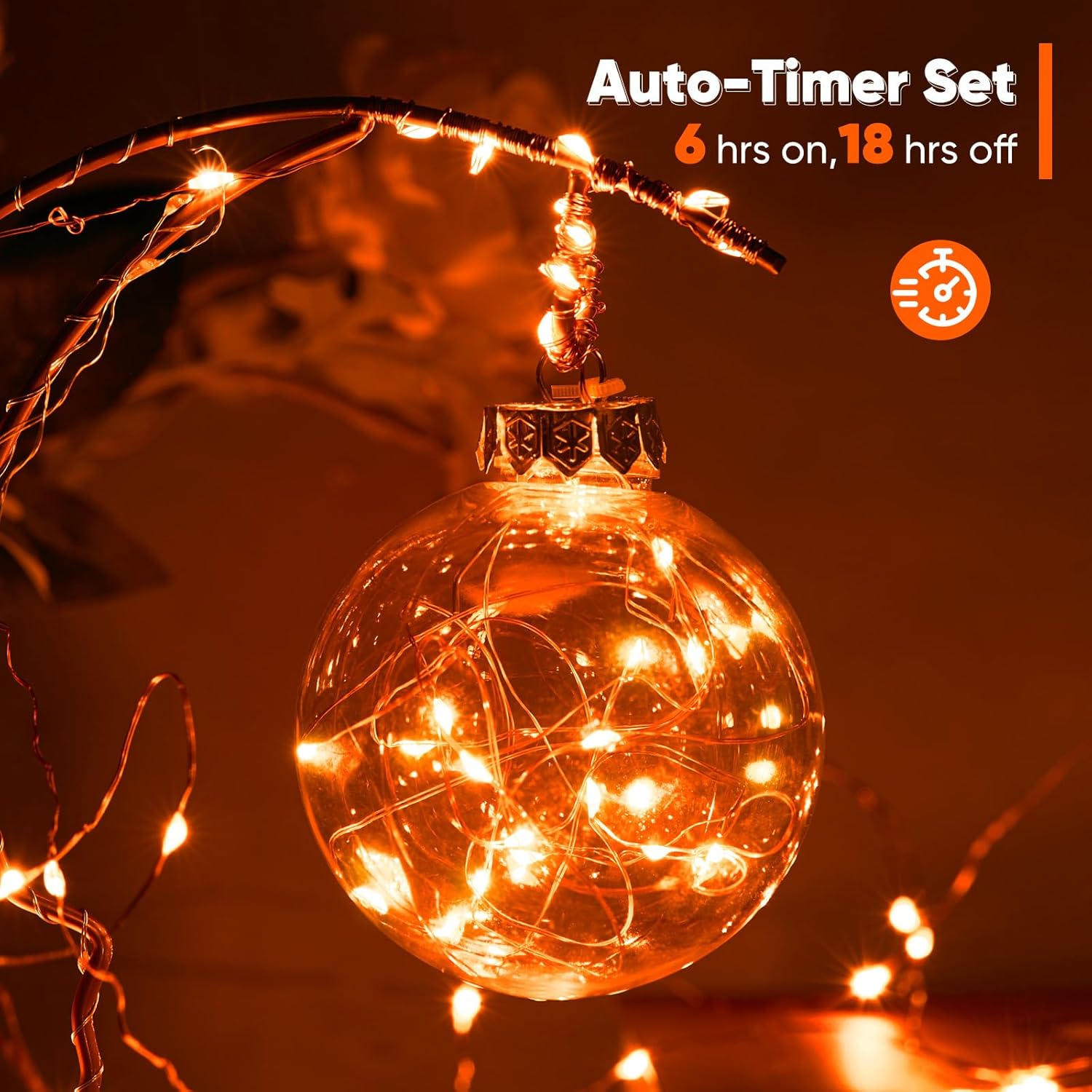 1 Pack 32.8 Ft. Battery Operated Outdoor String Lights with Remote & Timer, LED Orange Fairy Lights, Waterproof Twinkle Lights for Bedroom, Dorm, Mason Jar, Wedding, Party, Christmas