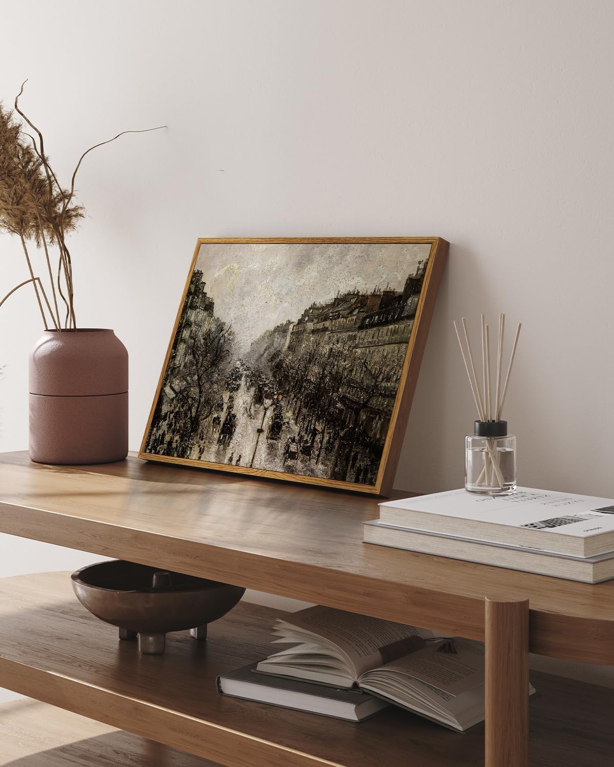 - VINTAGE FRAMED WALL ART DECOR: This painting, "Boulevard Montmartre à Paris" is the work of 19th century French artist Camille Pissarro. This work captures wall art decor not just a Parisian street, but a moment in time, alive with movement and the charm of city life in the rain. This vintage landscape painting can add more classic and elegant elements to your space.