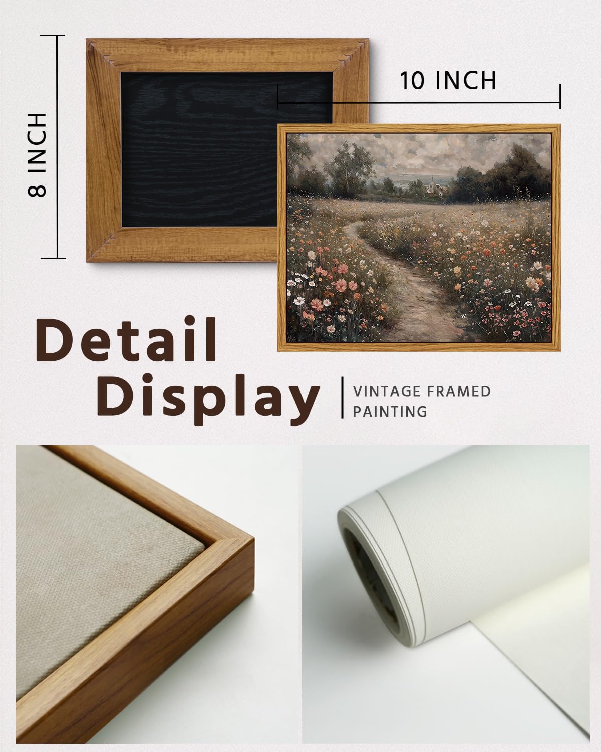 VIYYIEA Framed Canvas Wall Art Home Decor Vintage Landscape Nature Country Wildflower Paintings Farmhouse Pictures Floral Artwork Rustic Flower Prints Cottagecore Living Room Bedroom Bathroom 8x10in