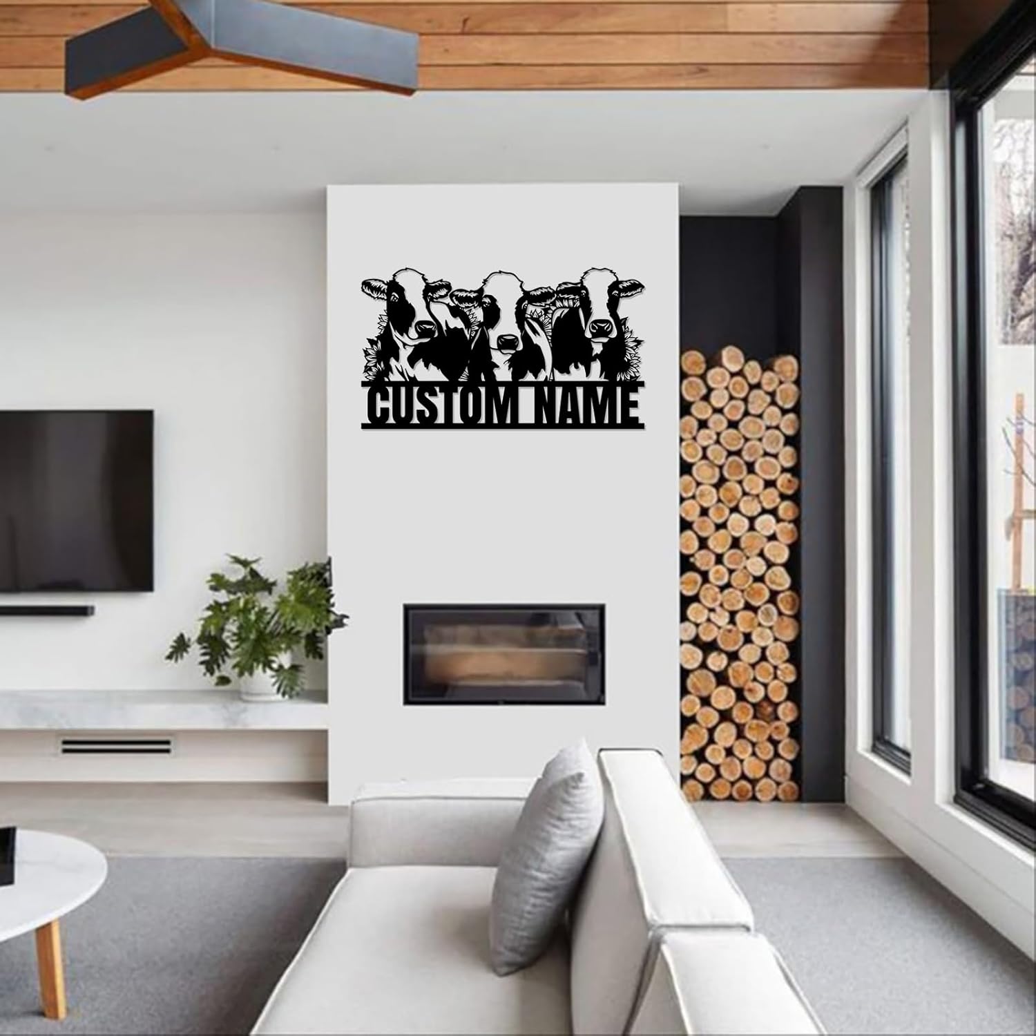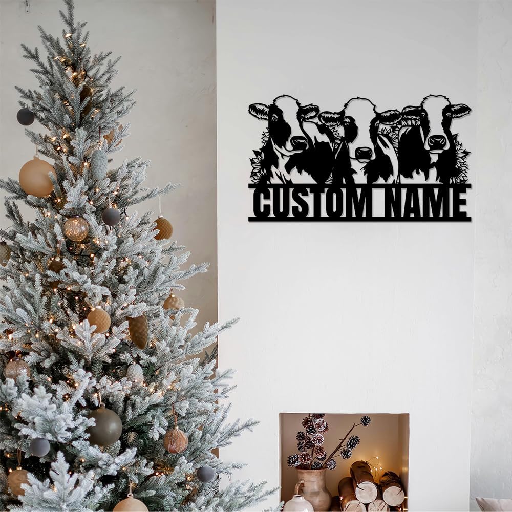 Custom Metal Sign, Personalized Last Name Wall Art, Farm Customized Metal Wall Decor for Wedding, Cow Plaque Decor for Farmhouse Living Room Indoor/Outdoor Wall Hanging