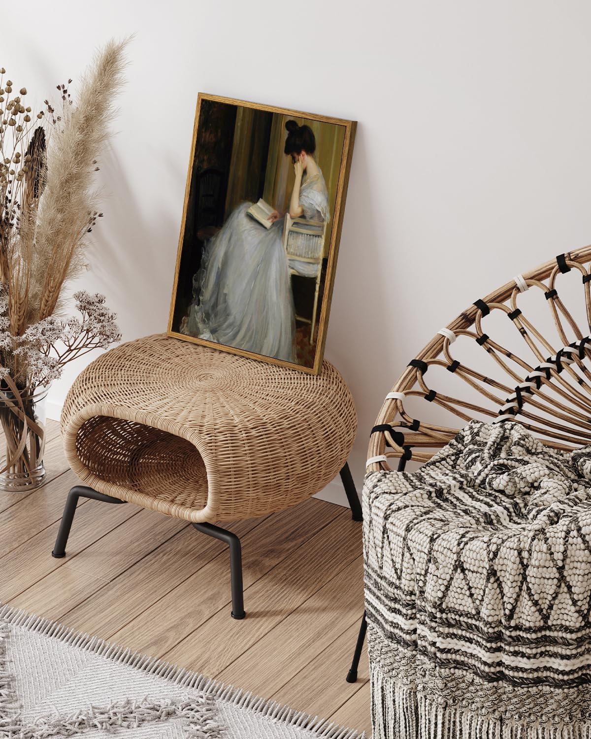 - VINTAGE OIL PAINTING: The portrait wall art is a beautifully executed painting that combines realism with subtle impressionistic touches to create a serene and intimate scene. The retro frame enhances the artwork's elegance, making it a striking and valued piece. The wall decor painting's focus on a solitary woman reading in a quiet, warmly lit space evokes themes of contemplation, solitude, and intellectual engagement, making it a timeless and evocative work of art.