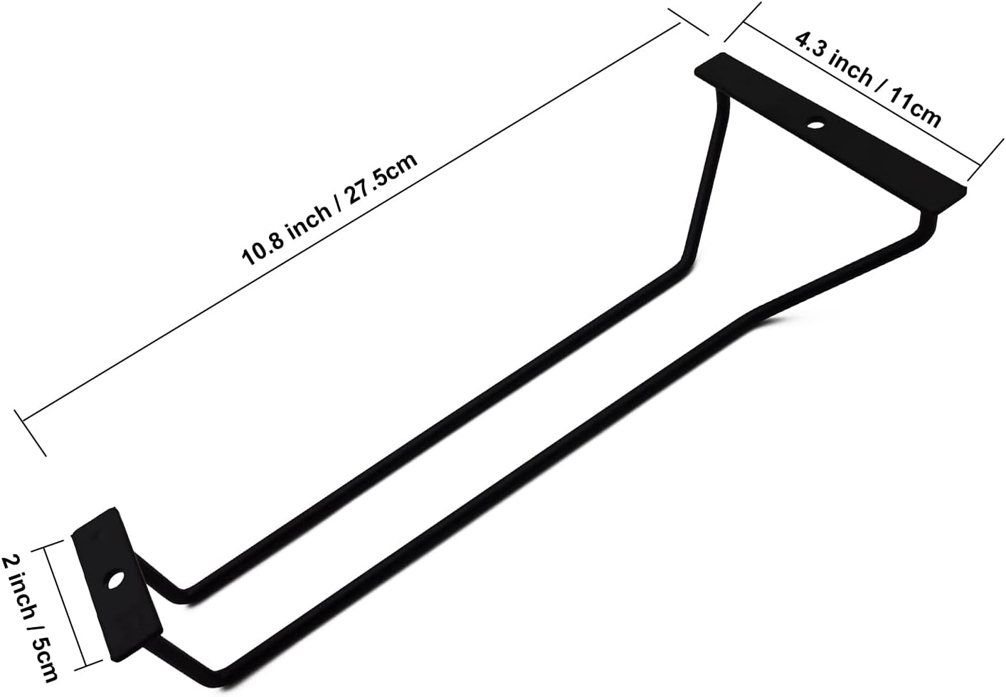 10.8 Inch Black Wine Glass Rack, Under Cabinet Wine Glass Holder Stainless Steel Stemware Rack - Hanging Stemware Holder for Cabinet Kitchen Bar, Set of 2