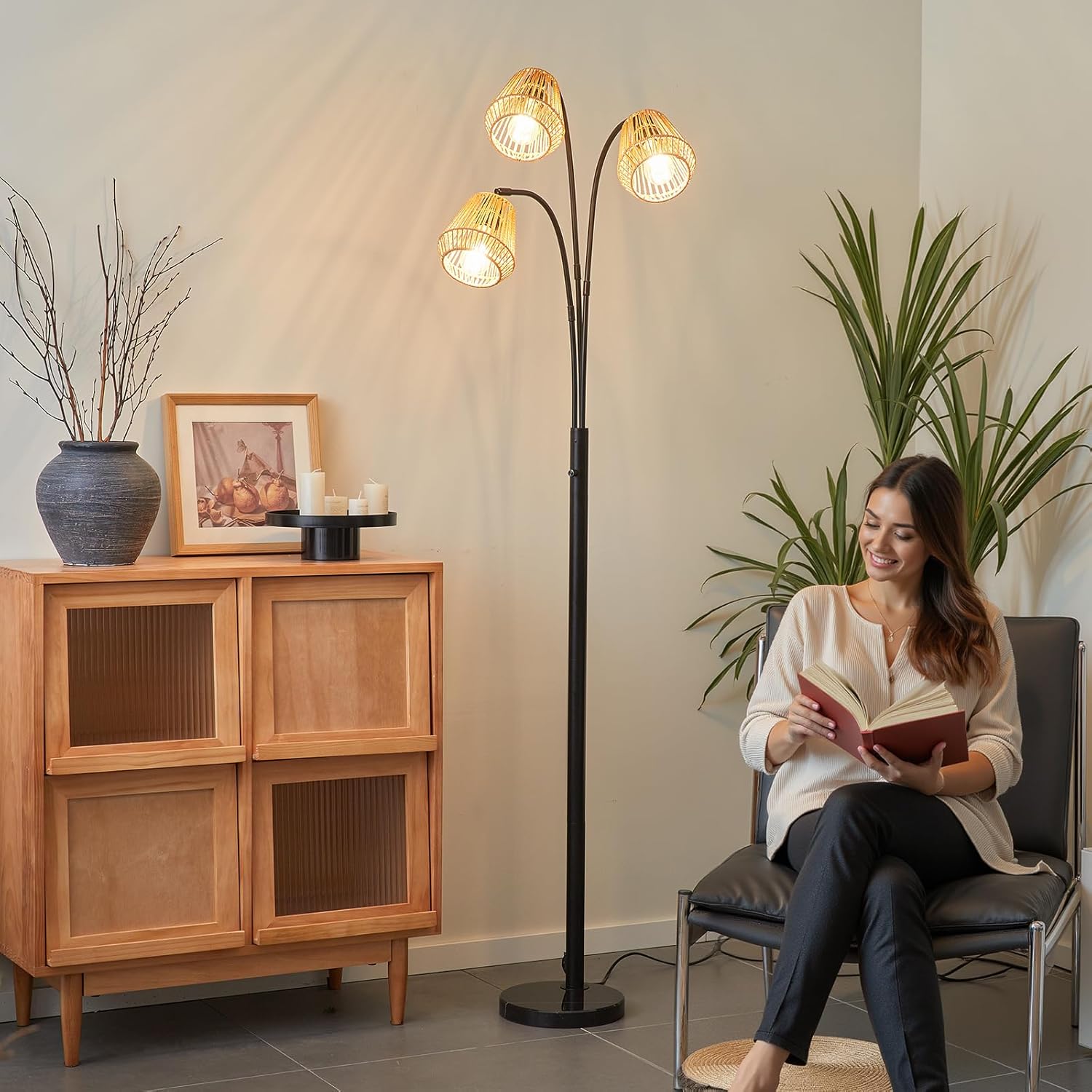 - 【Flexible Design】Our boho floor lamps for living room are designed to cater to any space with their 3 lamp floor lamp rattan structure. The adjustable arms provide focused lighting for a cozy reading corner or broad illumination for social gatherings. This coastal floor lamps for living room adapts to the multifunctionality of your home with refinement and ease