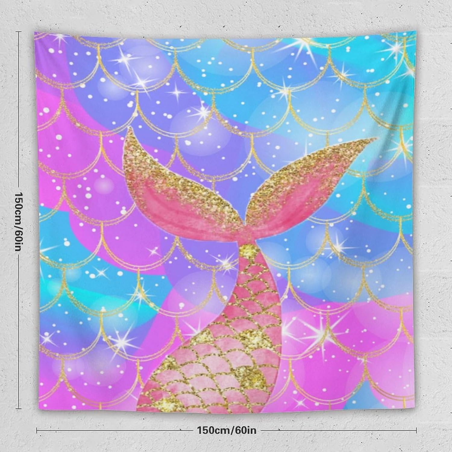 HZOHNAGO Mermaid Scales Tapestry Colorful Shiny Scales Mermaid Tail Pattern Printed Wall Tapestry Wall Hanging for Bedroom Living Room Dorm 60" W x 60" H