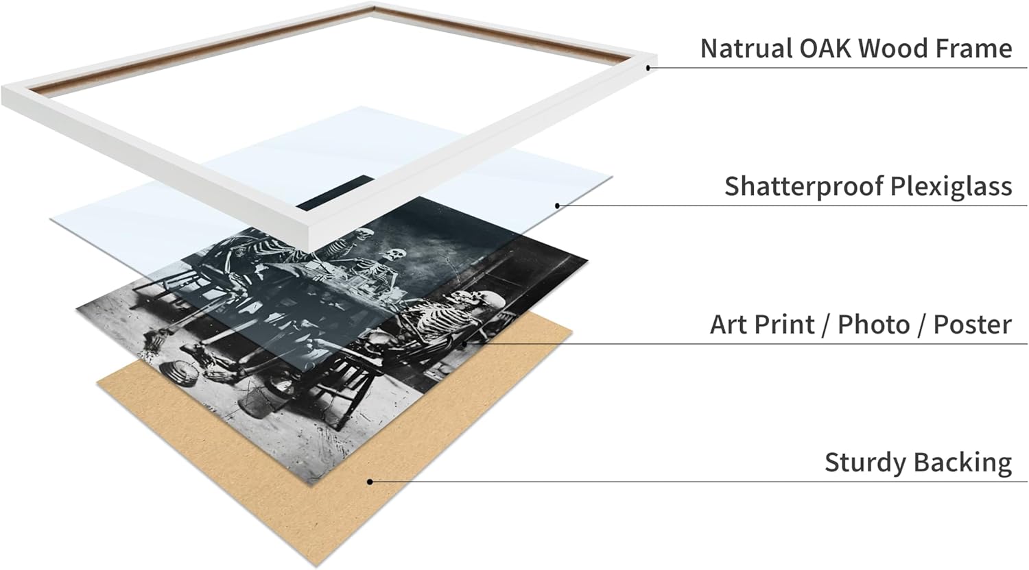 Poster Master Vintage Photograph Poster - Retro Daguerreotype Print - Gift for Artist, Friend - Skeletons Smoking at Table, Dinner Party, Goth - Wall Decor for Home, Dorm, 11x14 White Framed