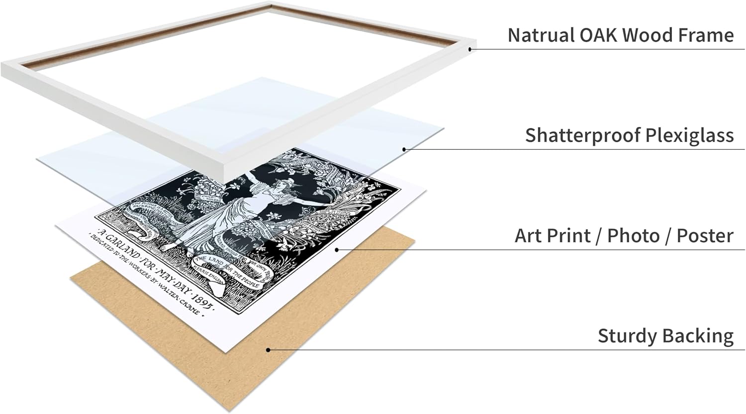 Poster Master Vintage Walter Crane Poster - Retro A Garland for May Day Print - Socialist Art - Gift for Him, Her, Men, Women - Wall Decor for Home, Office, Living Room, 11x14 White Framed