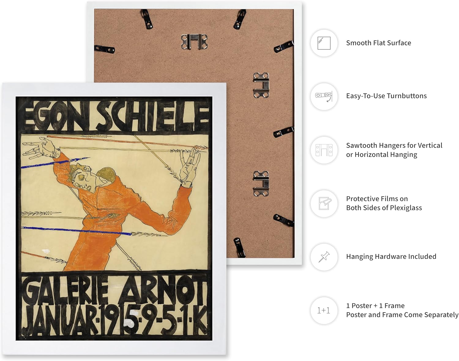 Poster Master Vintage Painting Poster - Retro Expressionism Print - Self Portrait as the Martyred St Sebastian - Gift for Artist, Friend - Wall Decor for Home, Office, 8x10 White Framed