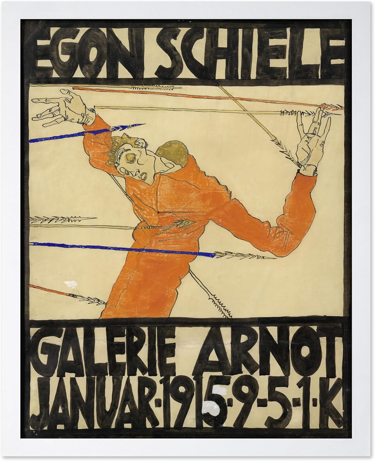 Poster Master Vintage Painting Poster - Retro Expressionism Print - Self Portrait as the Martyred St Sebastian - Gift for Artist, Friend - Wall Decor for Home, Office, 11x14 White Framed
