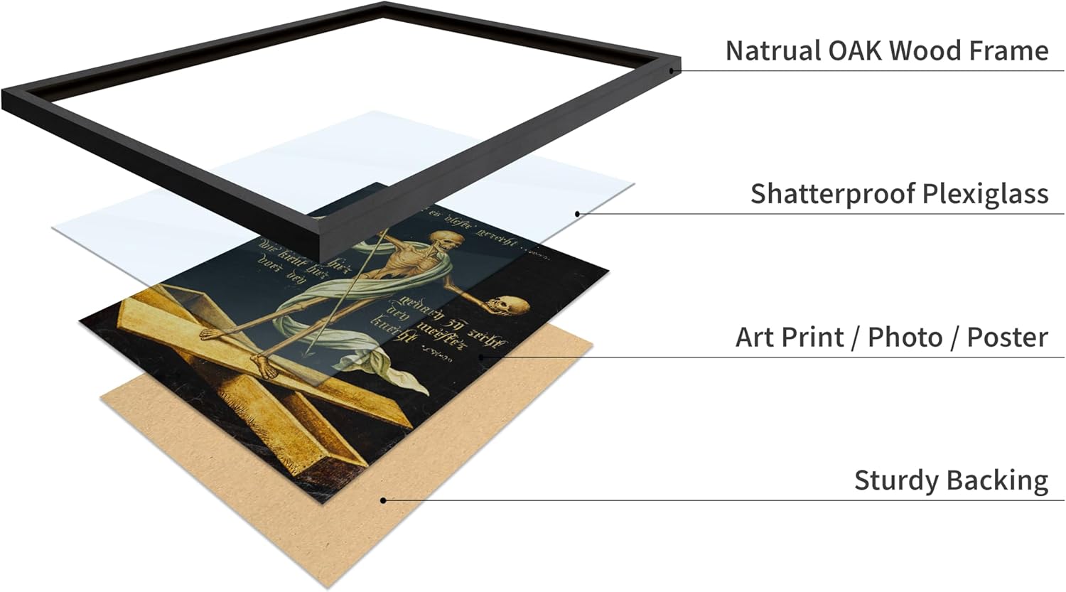 Poster Master Vintage Medieval Poster - Retro Gothic Print - Gift for Artist, Friend - Allegory of Life and Death, Skeleton, Dark, Skull - Wall Decor for Home, Living Room, 16x20 Black Framed