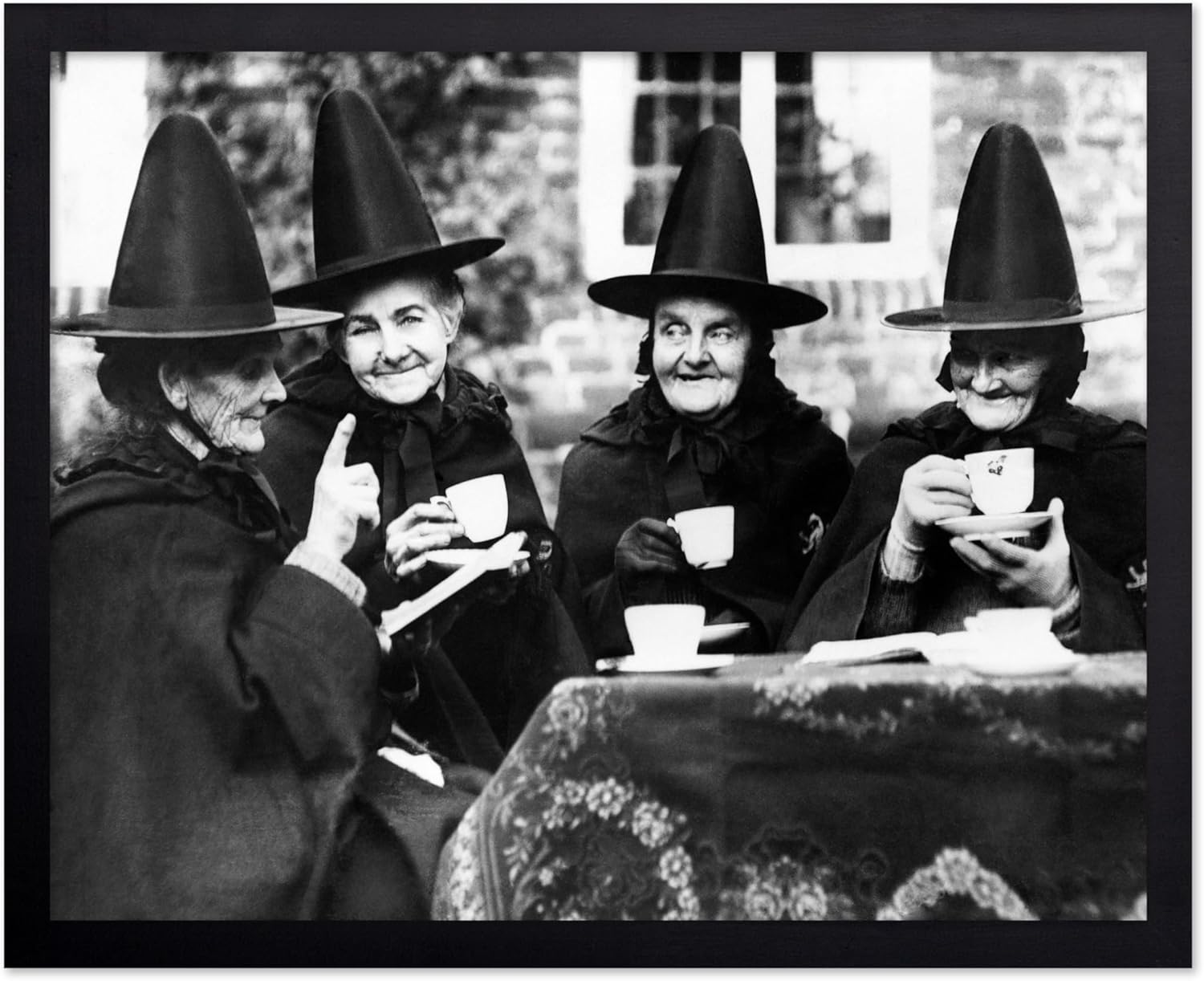 Poster Master Classic Photograph Poster - Vintage Halloween Print - Gift for Artist, Friend - Witches Tea Party, Old Women Smiling, Wearing Robes - Wall Decor for Living Room, 11x14 Black Framed
