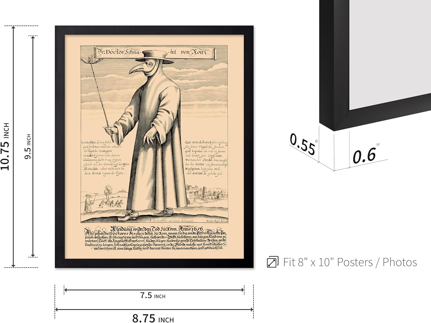 Poster Master Vintage Medieval Poster - Retro Illustration Print - Gift for Friend - Plague Doctor, Pandemic Mask, Physician, Black Death - Wall Decor for Home, Living Room, 8x10 Black Framed