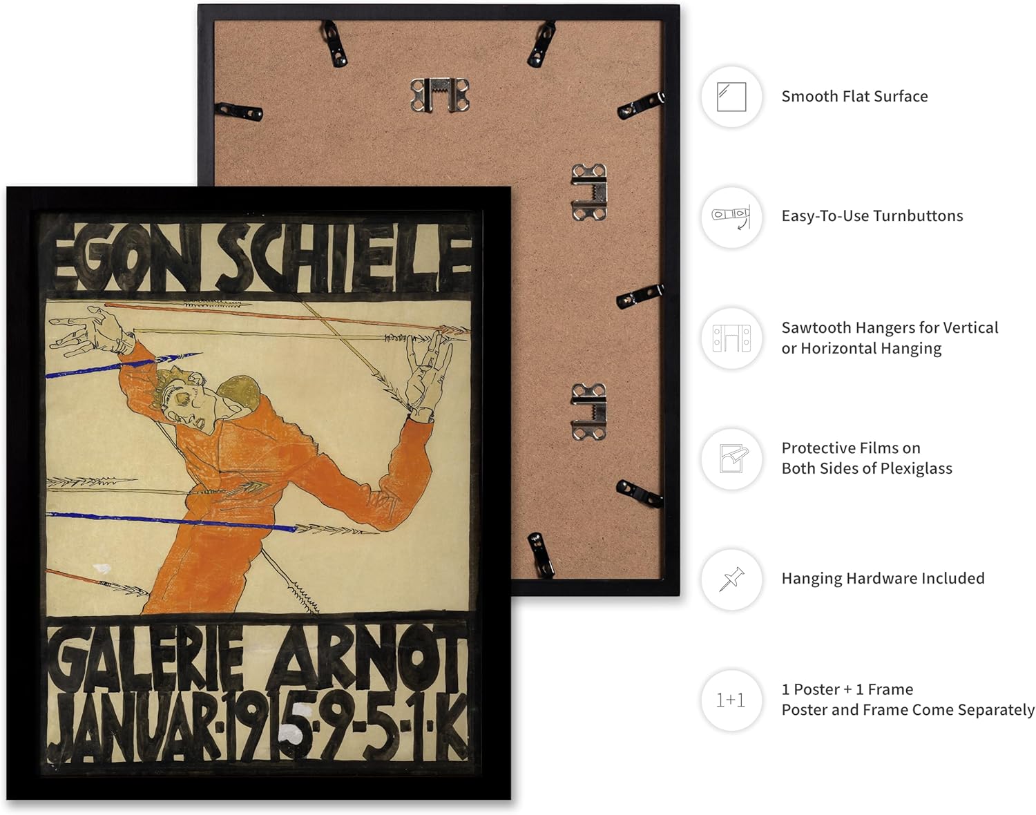 Poster Master Vintage Painting Poster - Retro Expressionism Print - Self Portrait as the Martyred St Sebastian - Gift for Artist, Friend - Wall Decor for Home, Office, 11x14 Black Framed