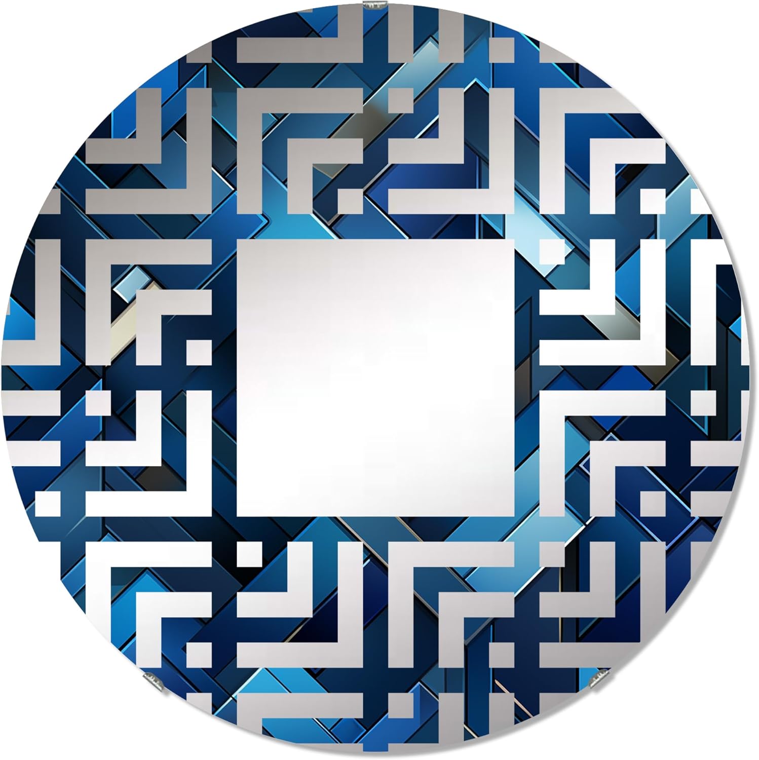 Symmetric Cubes in Deep Cobalt Blue - Geometric Maze - 24 Inches - Round Decorative Wall Mirror for Bathroom, Bedroom, Entryway, Living Room, Vanity Room and Modern Décor