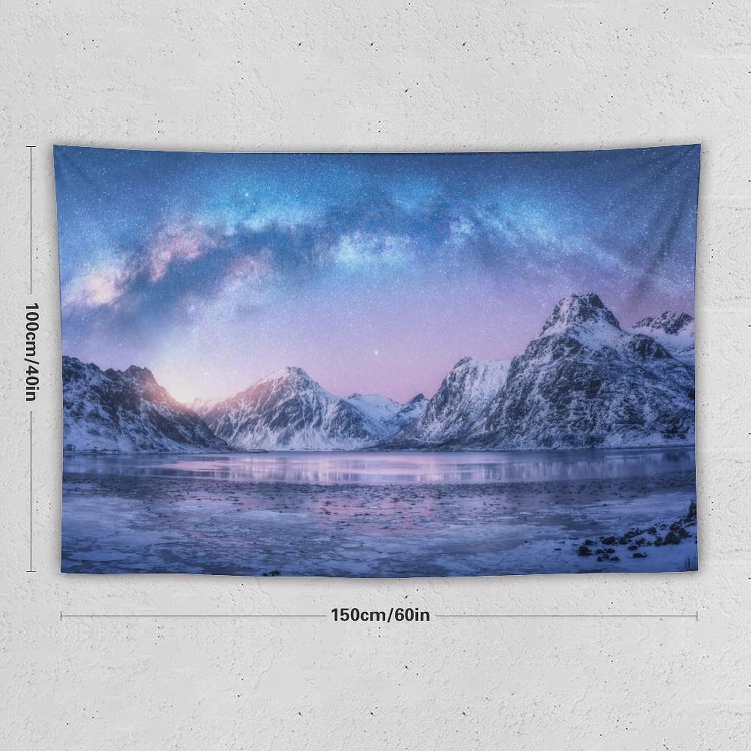 HZOHNAGO Mountain Tapestry Aurora Snow Mountain Sunset Pattern Printed Wall Tapestry Wall Hanging for Bedroom Living Room Dorm 60" W x 40" H