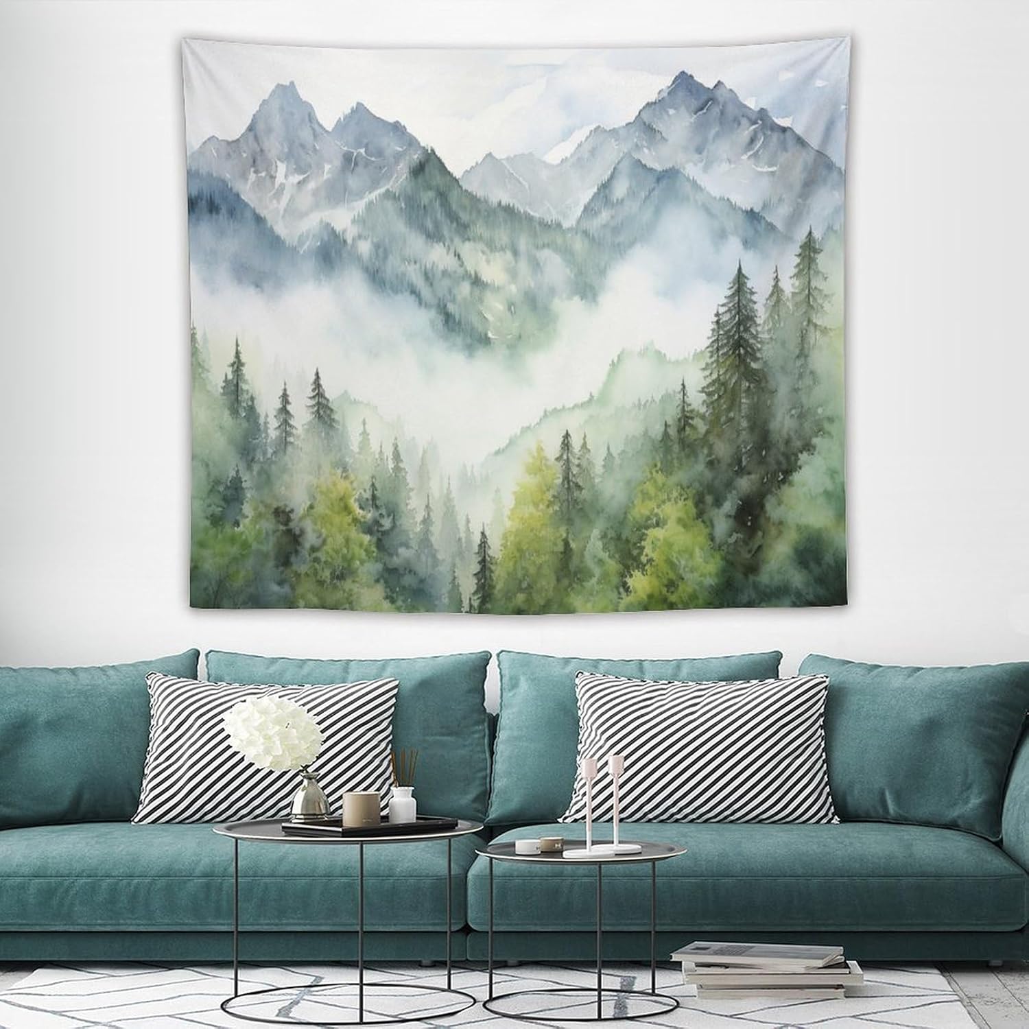 HZOHNAGO Mountain Tapestry Misty Green Forest Mountain Pattern Printed Wall Tapestry Wall Hanging for Bedroom Living Room Dorm 60" W x 50" H