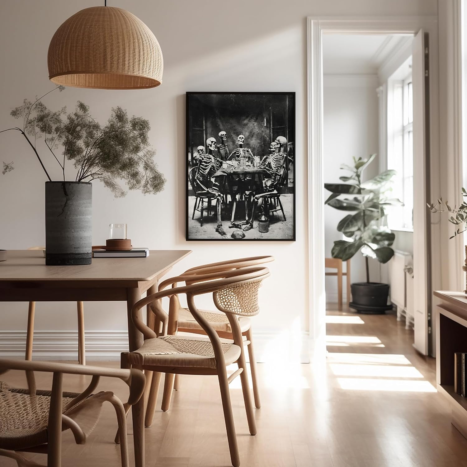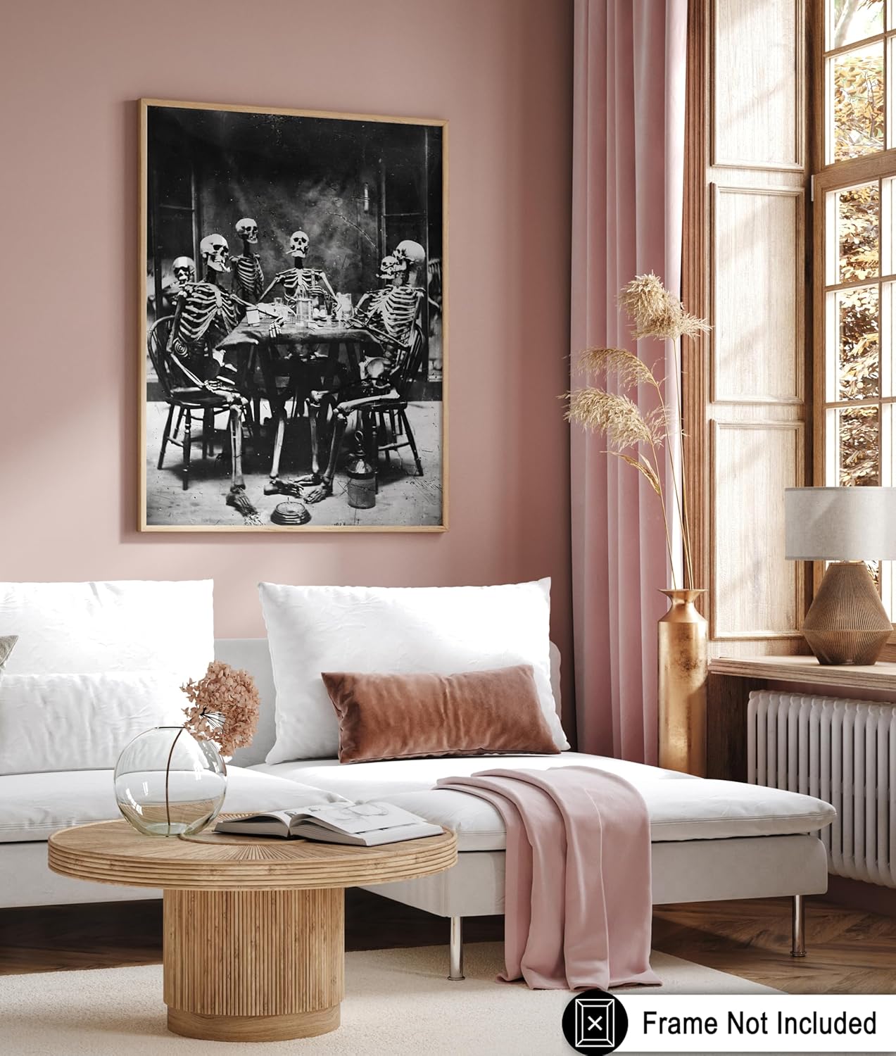 Poster Master Vintage Photograph Poster - Retro Daguerreotype Print - Gift for Artist, Friend - Skeletons Smoking at Table, Dinner Party, Goth - Wall Decor for Home, Dorm, 24x32 Unframed Wall Art