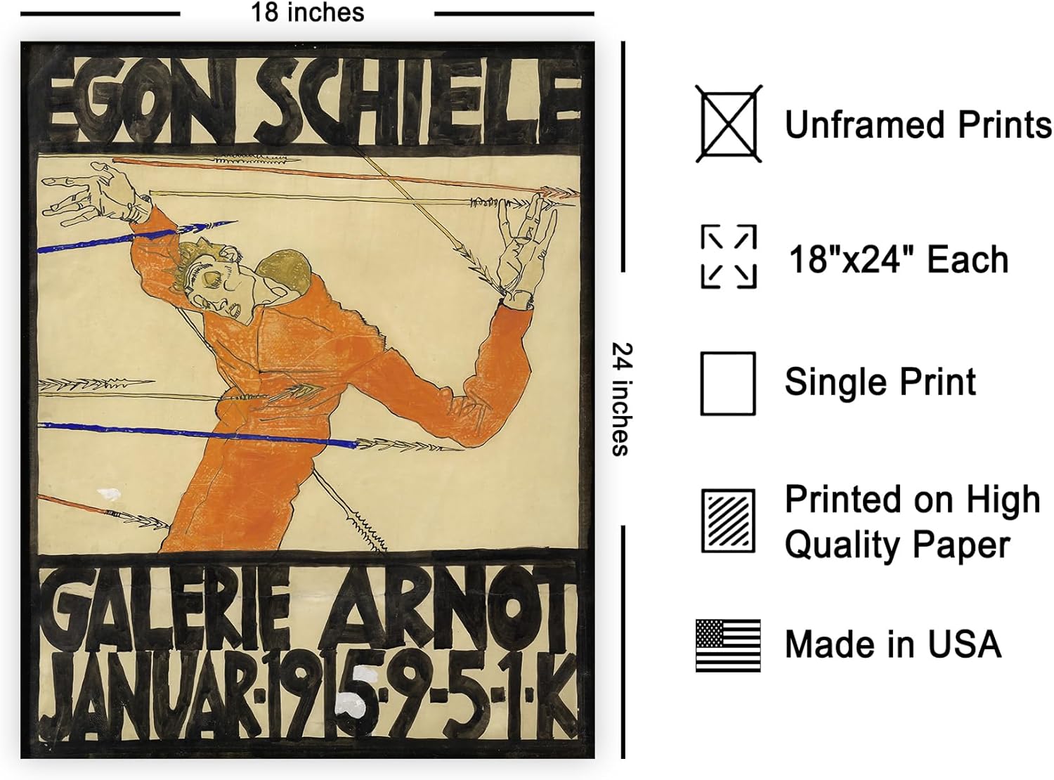 Poster Master Vintage Painting Poster - Retro Expressionism Print - Self Portrait as the Martyred St Sebastian - Gift for Artist, Friend - Wall Decor for Home, Office, 18x24 Unframed Wall Art